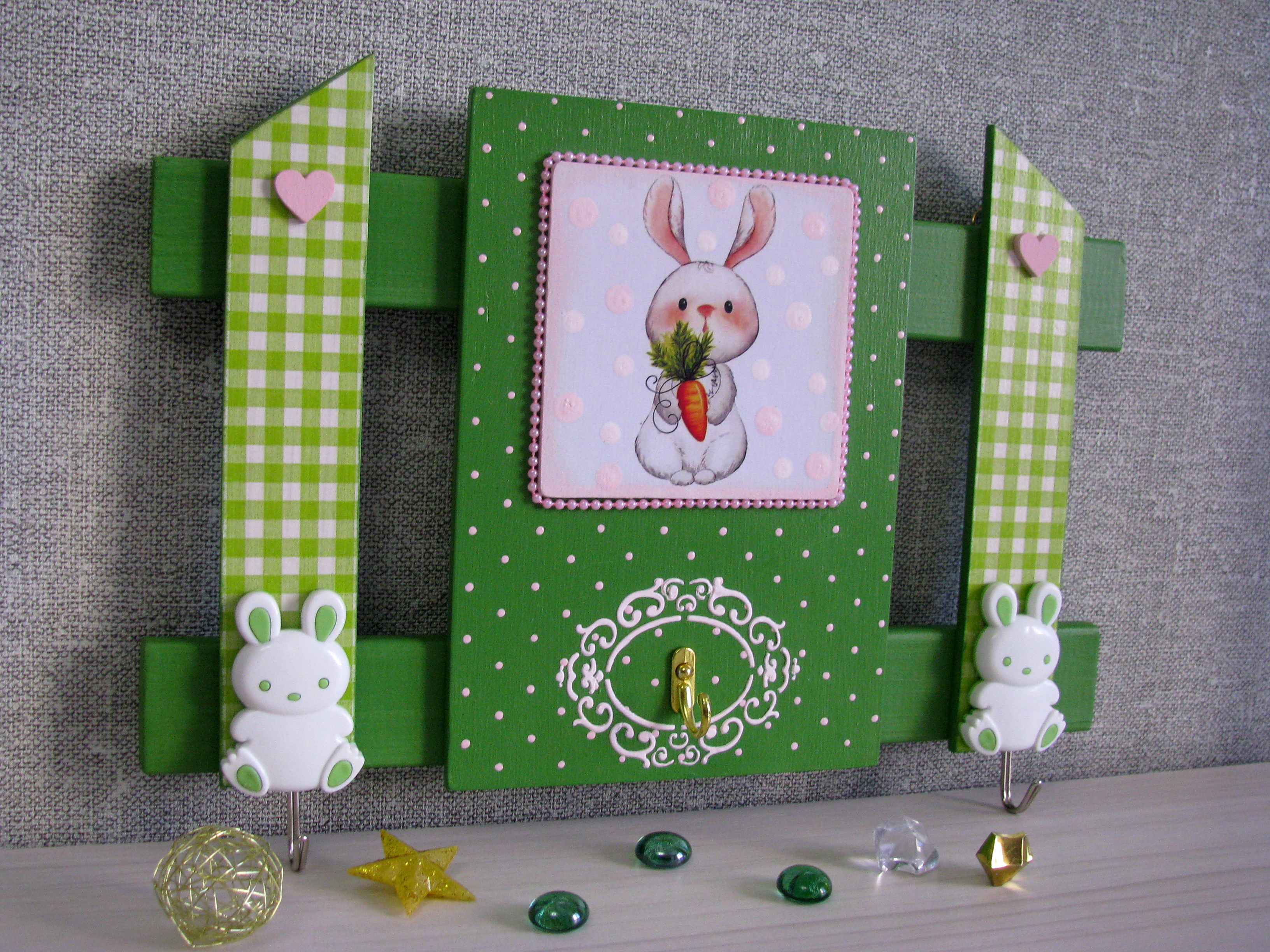 Первоначально планировалась вешалка для кухни, а получилась "Зайка" для зайки-малышки. В детскую девочки.