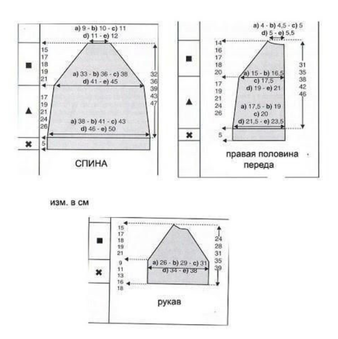 см (80 р.) – e) 26 см (86 р.) от каймы , формируем реглан закрывая с