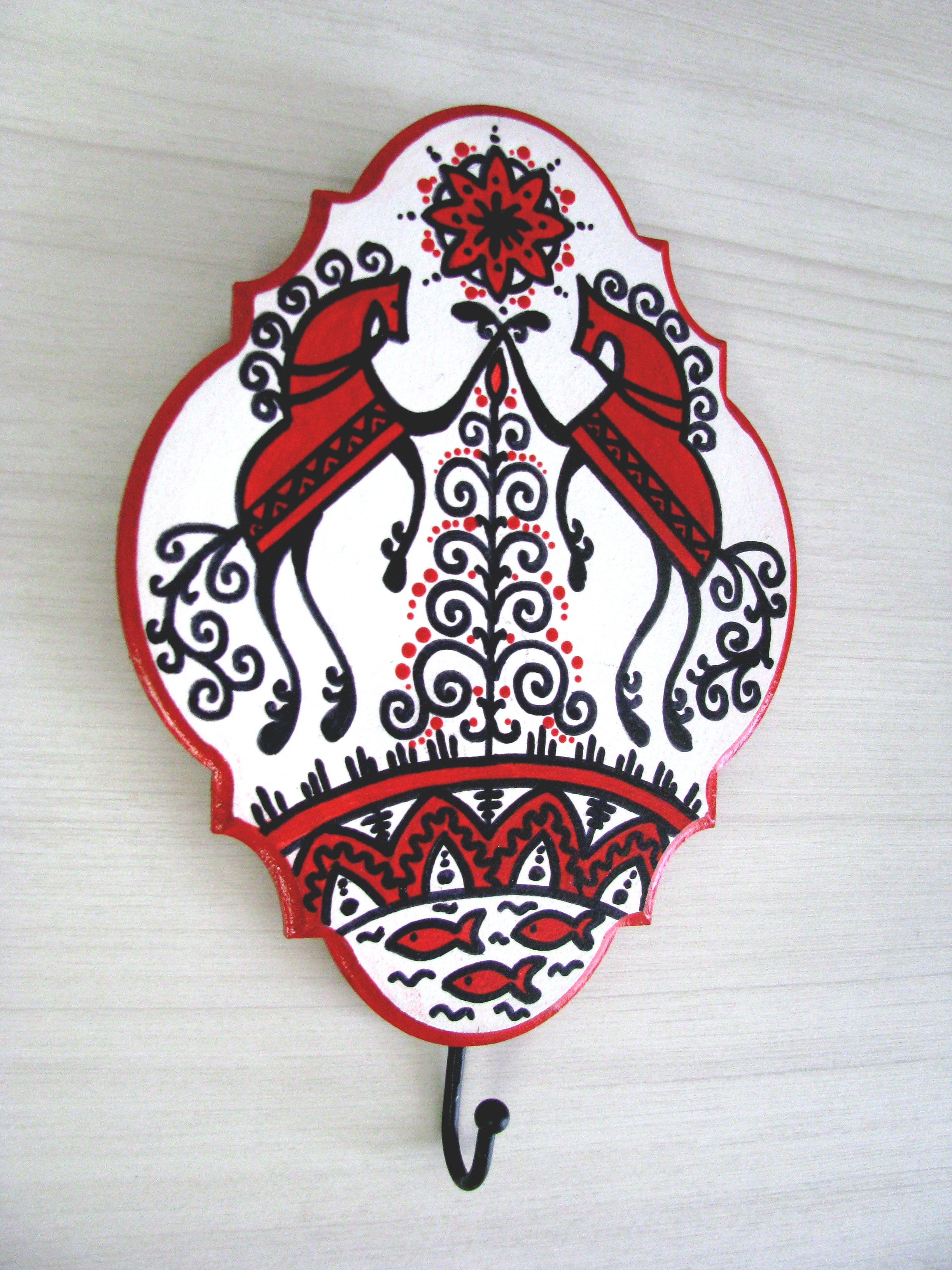 В конкурсе "Символ года" участвую впервые. Всё потому, что покорили меня забавные Мезенские лошадки. Рискнула не только их вышить, но и расписать в силу своих возможностей. Строго говоря, не считаю свою роспись Мезенской в классическом варианте, но элементы этой росписи присутствуют в моей работе.