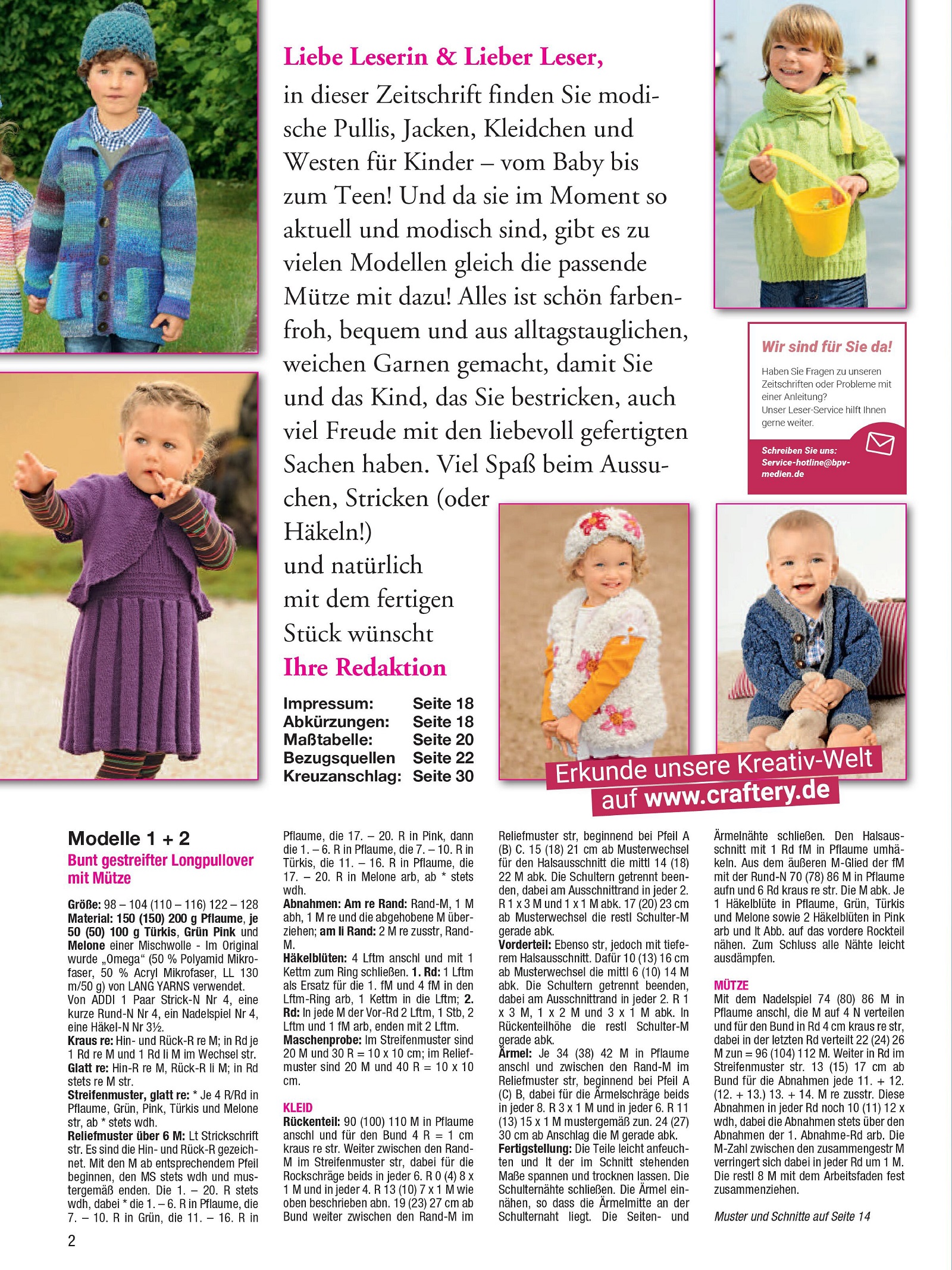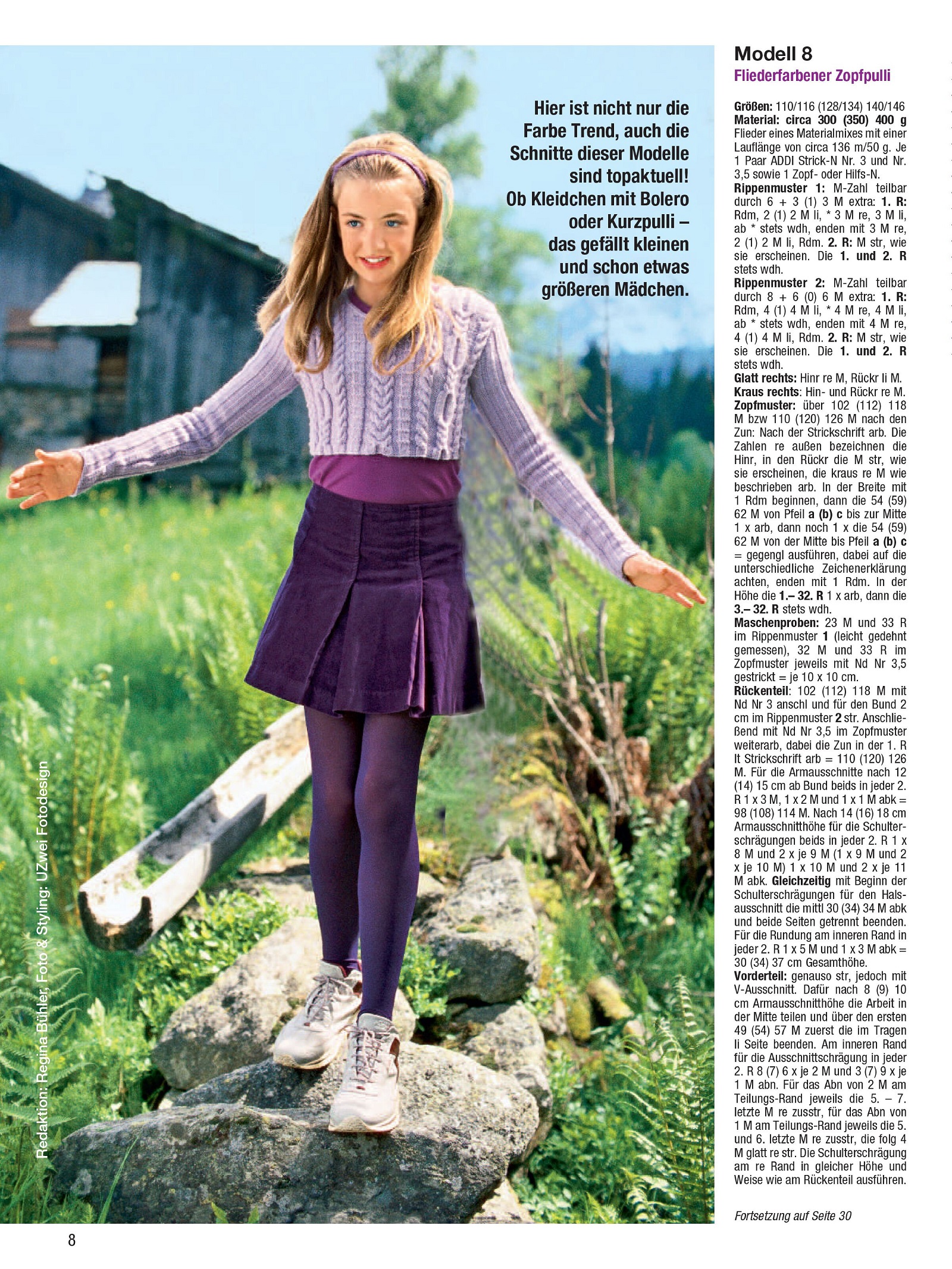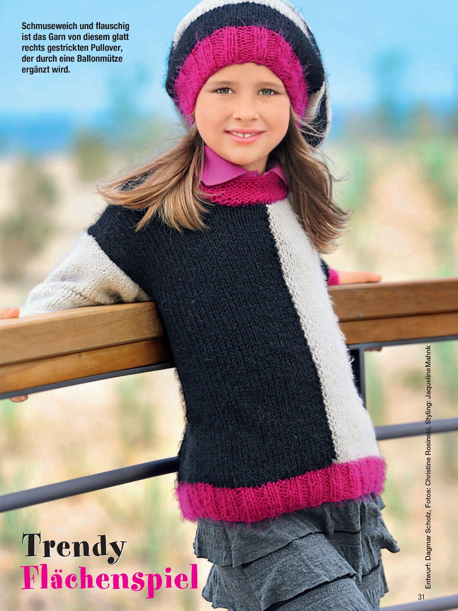 Журнал предлагает коллекцию трикотажных моделей для детей. В этом журнале вы найдёте модные свитера, куртки, платья и жилеты- от малышей до подростков! Детальные описания, иллюстрации и схемы позволят без труда выполнить любую модель.