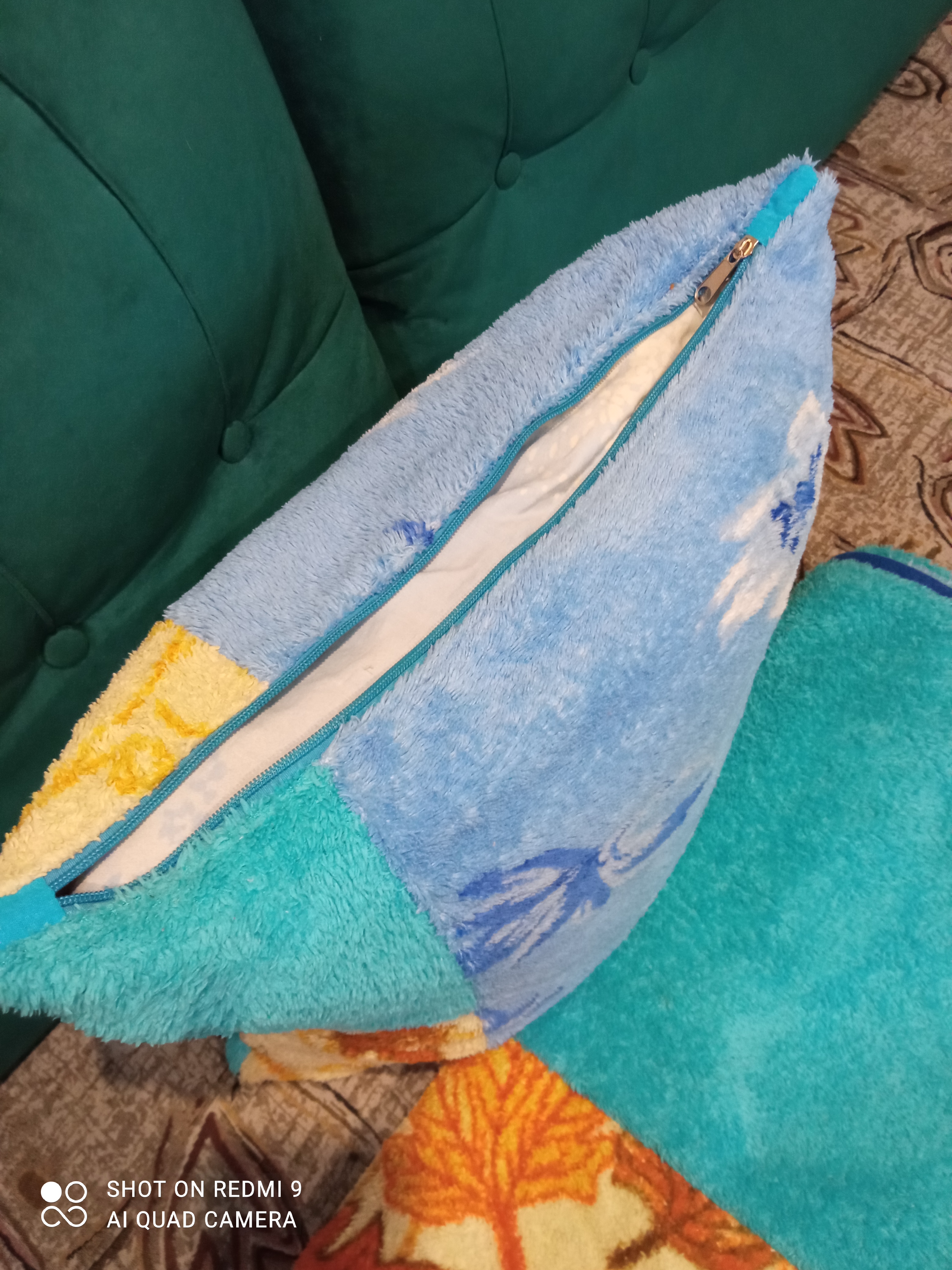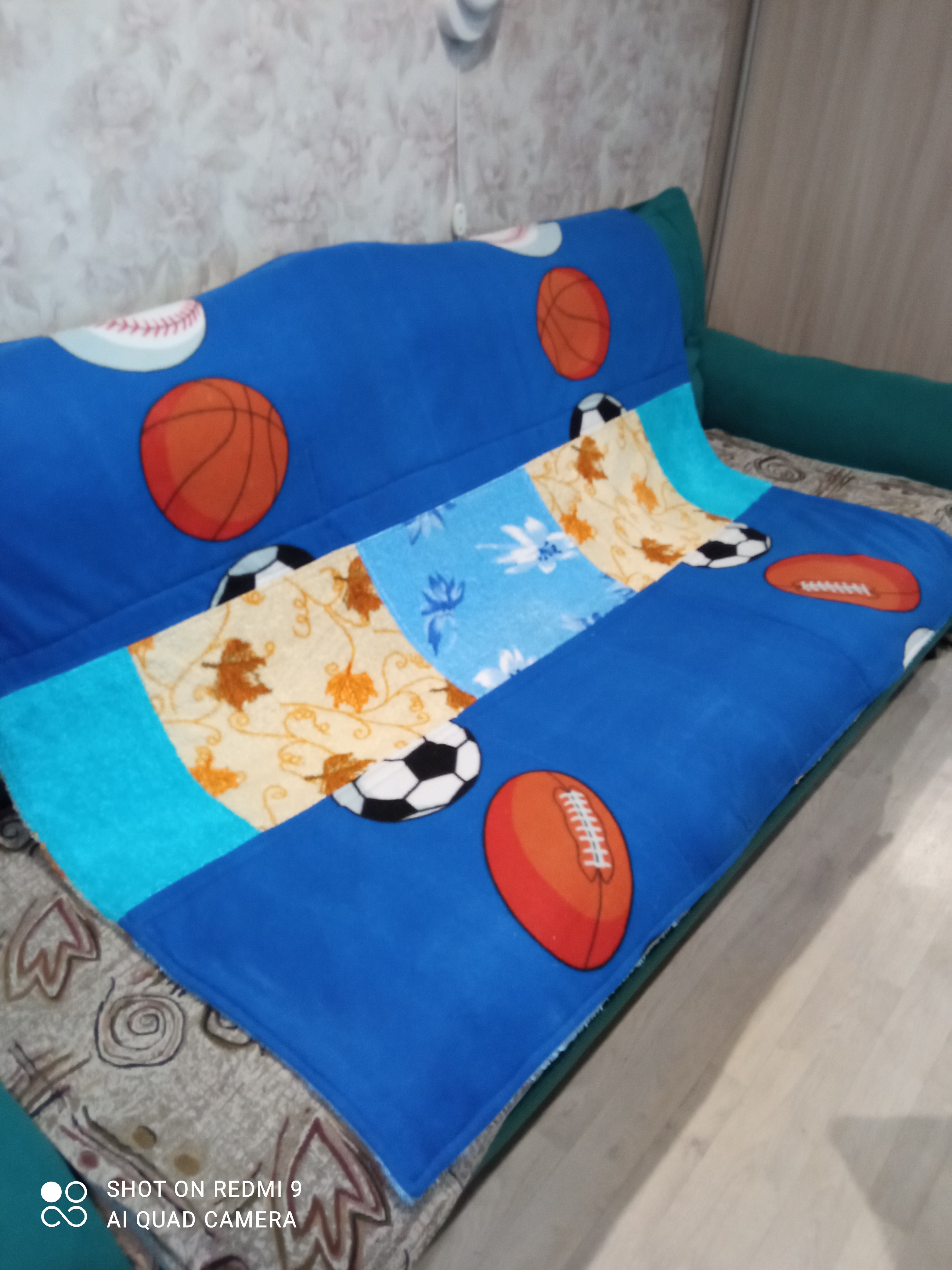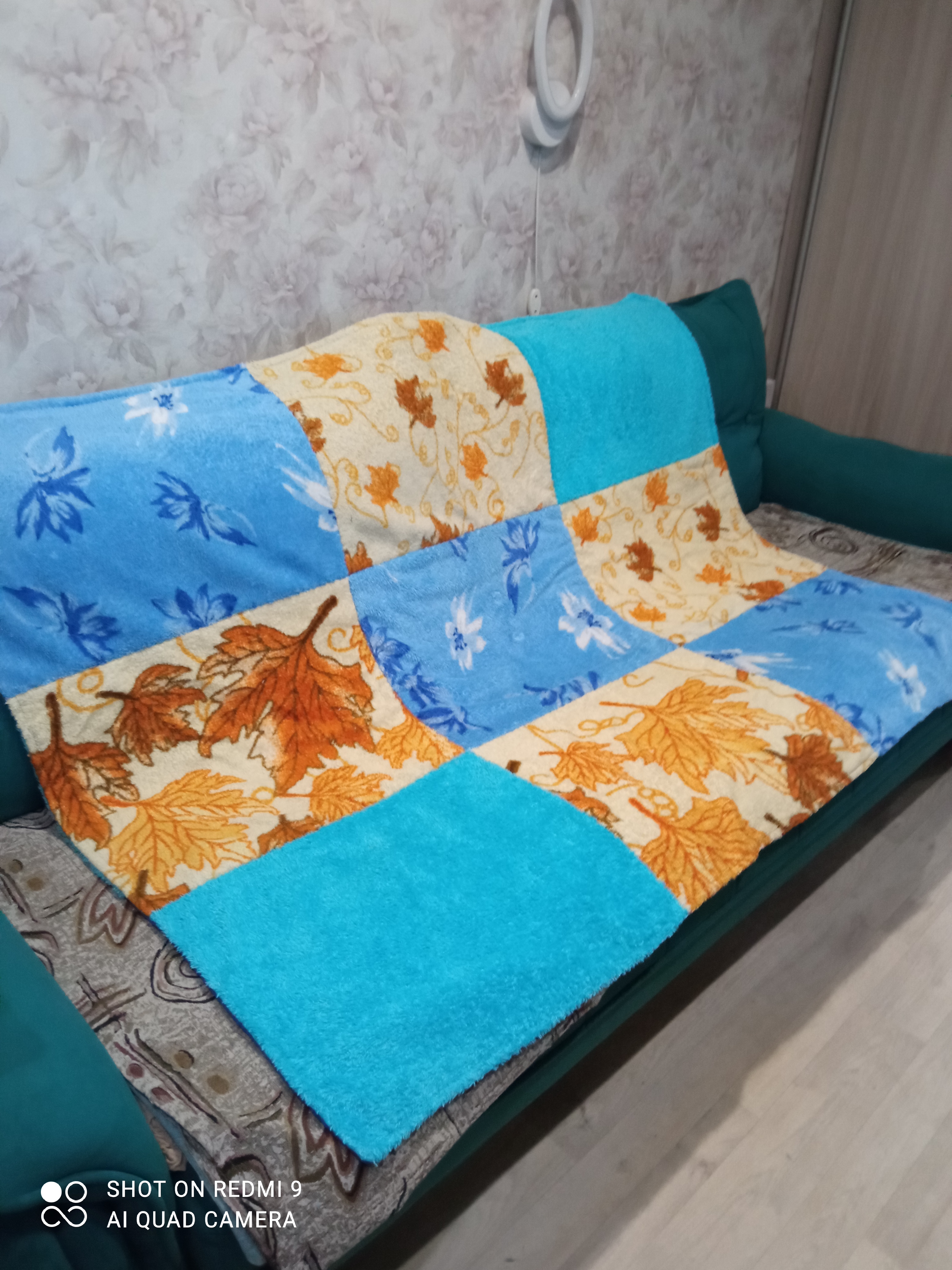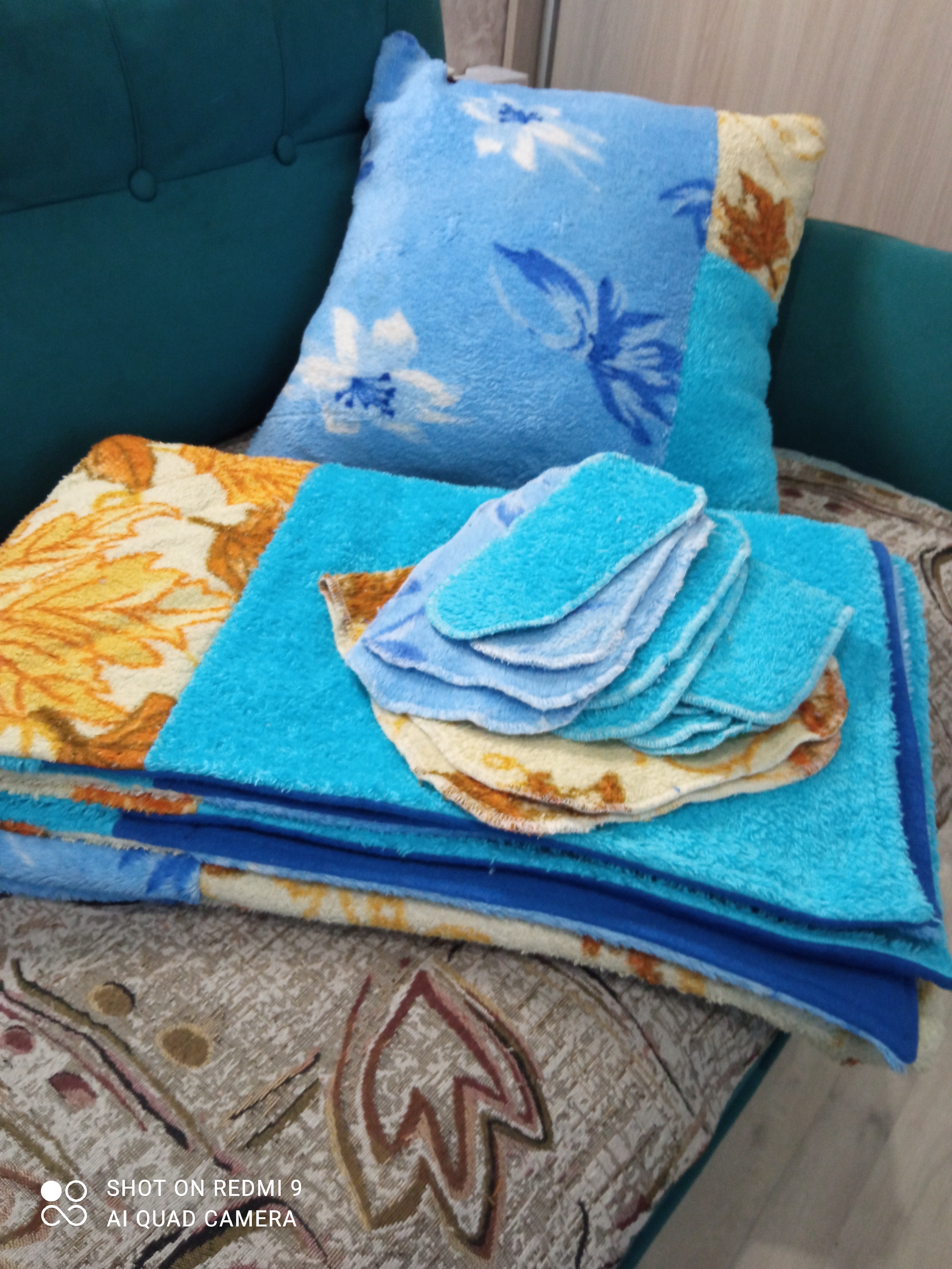 Приветствую всех рукодельниц и предлагаю посмотреть очередную утилизацию. Жили были три махровых халата и небольшой флисовый пледик. И никому они не были нужны. Решила я их преобразовать в нужные вещи. Распорола все халаты. Большое полотно от халатов пошло на плед. Остатки, на подушку, а совсем маленькие кусочки - на салфетки для уборки. Совсем ненужные части халатов мелко порезала и набила подушку. Флисовый плед был маловат, я его разрезала по средине и увеличила за счёт махровых кусочков. Вот и готов комплект на дневной сончас. Может быть такая идея кому-нибудь пригодится, буду очень рада. Приятного просмотра.
