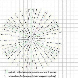 Только я вязала столбиками с накидом и делала 12 клиньев, по две прибавки в каждом клине через ряд.