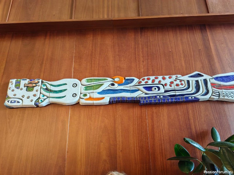 Внутри здания очень симпатичное кафе. Где не только кофе-чай. И оформление как продолжение выставки. Керамическое панно