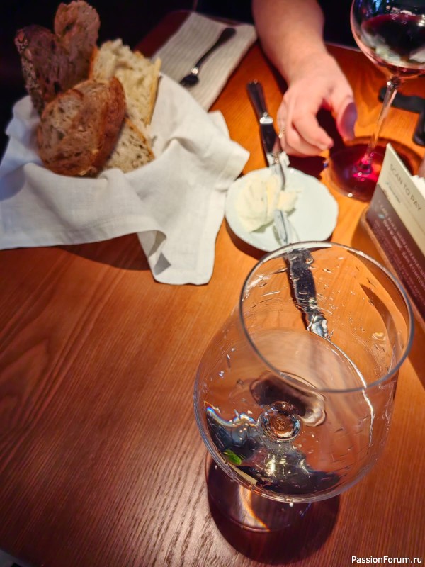 Получили пищу для ума, пошли обедать в это кафе... Давно не ели такого вкусного хлеба да еще и с маслом. Это такая замечательная закуска к хорошему вину