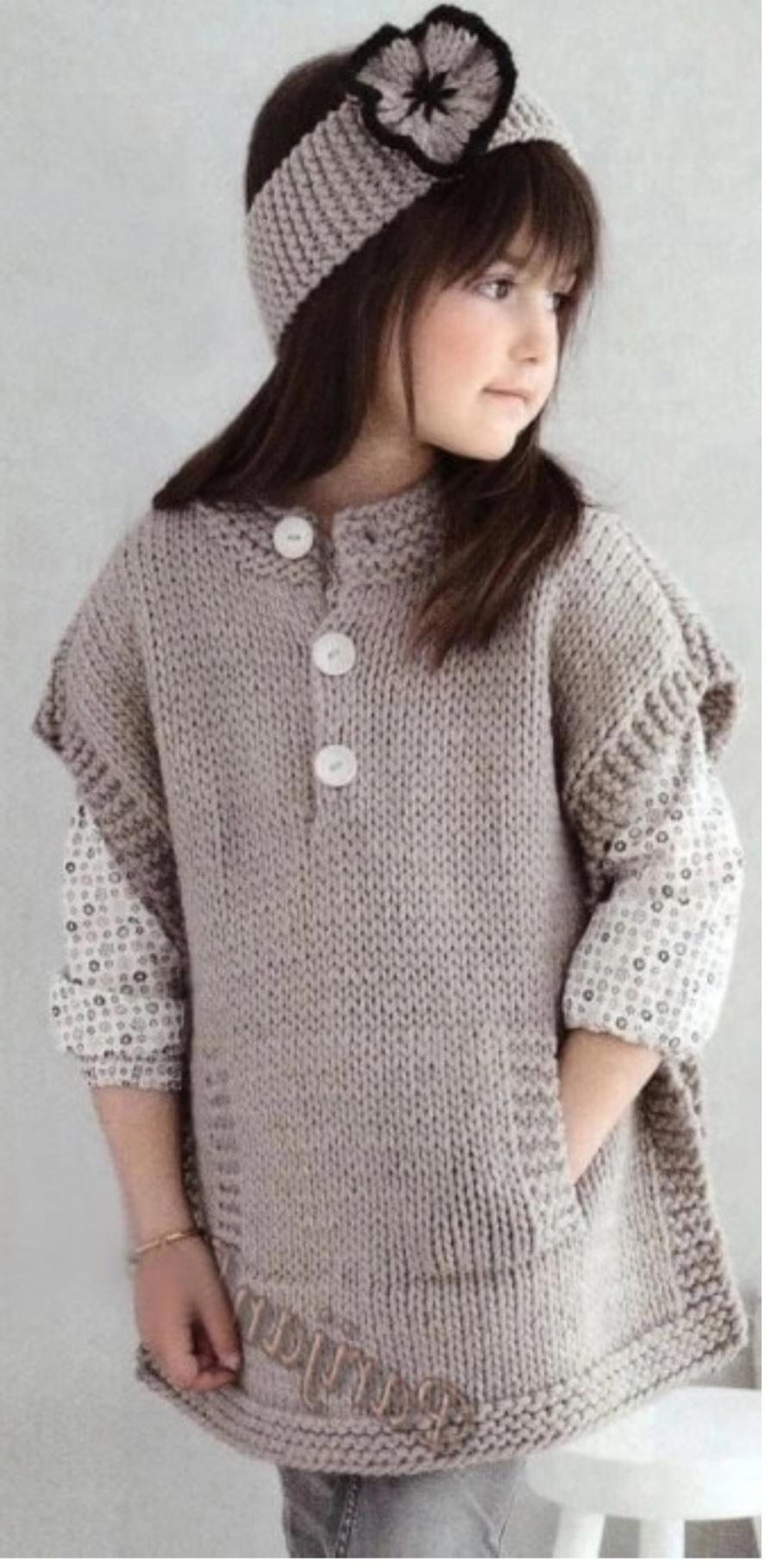 Размеры: а) 2 года, b) 4-6 лет, c) 8-10 л., d) 12-14 л. Техника вязания: платочная вязка, и лицевая гладь.