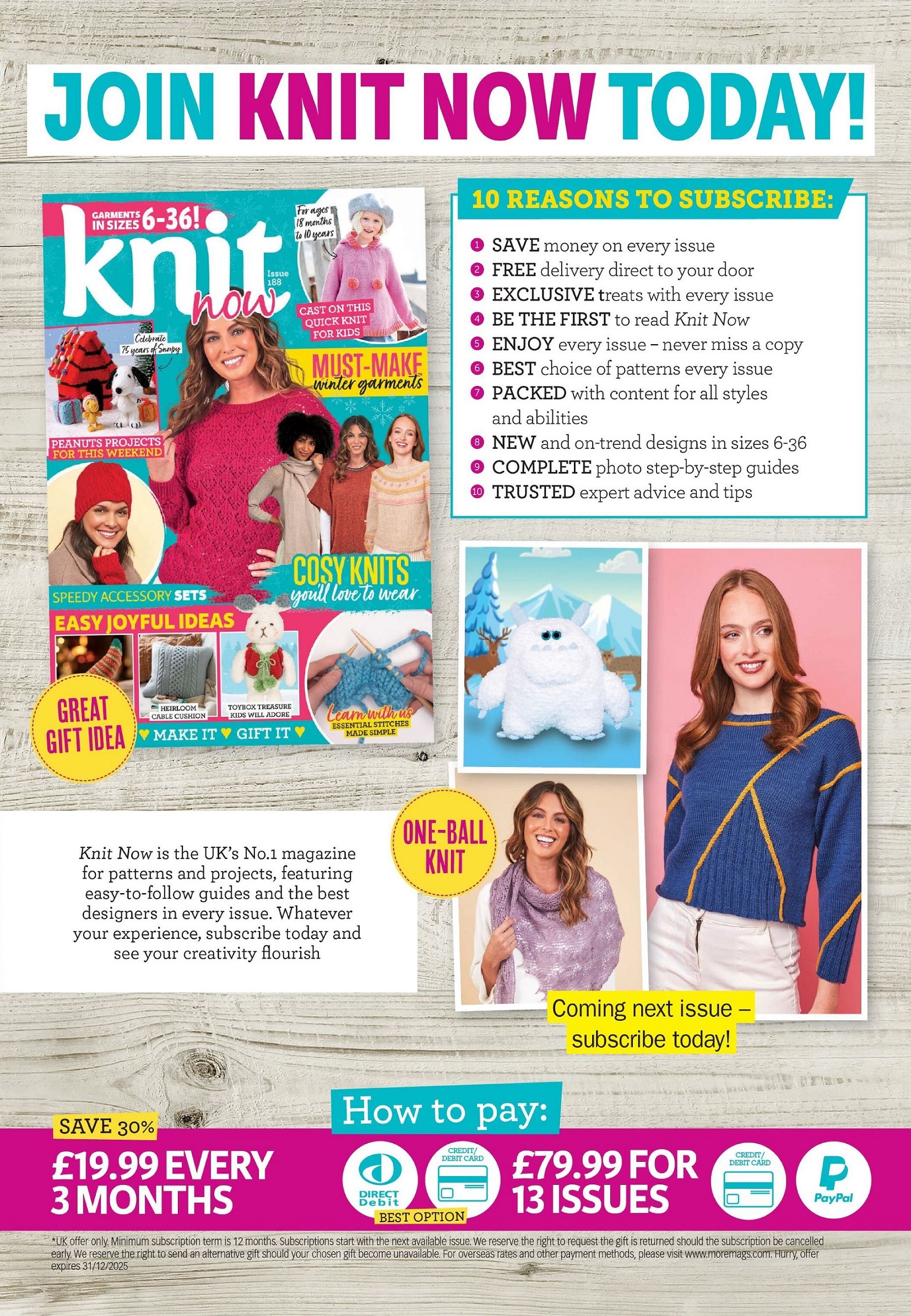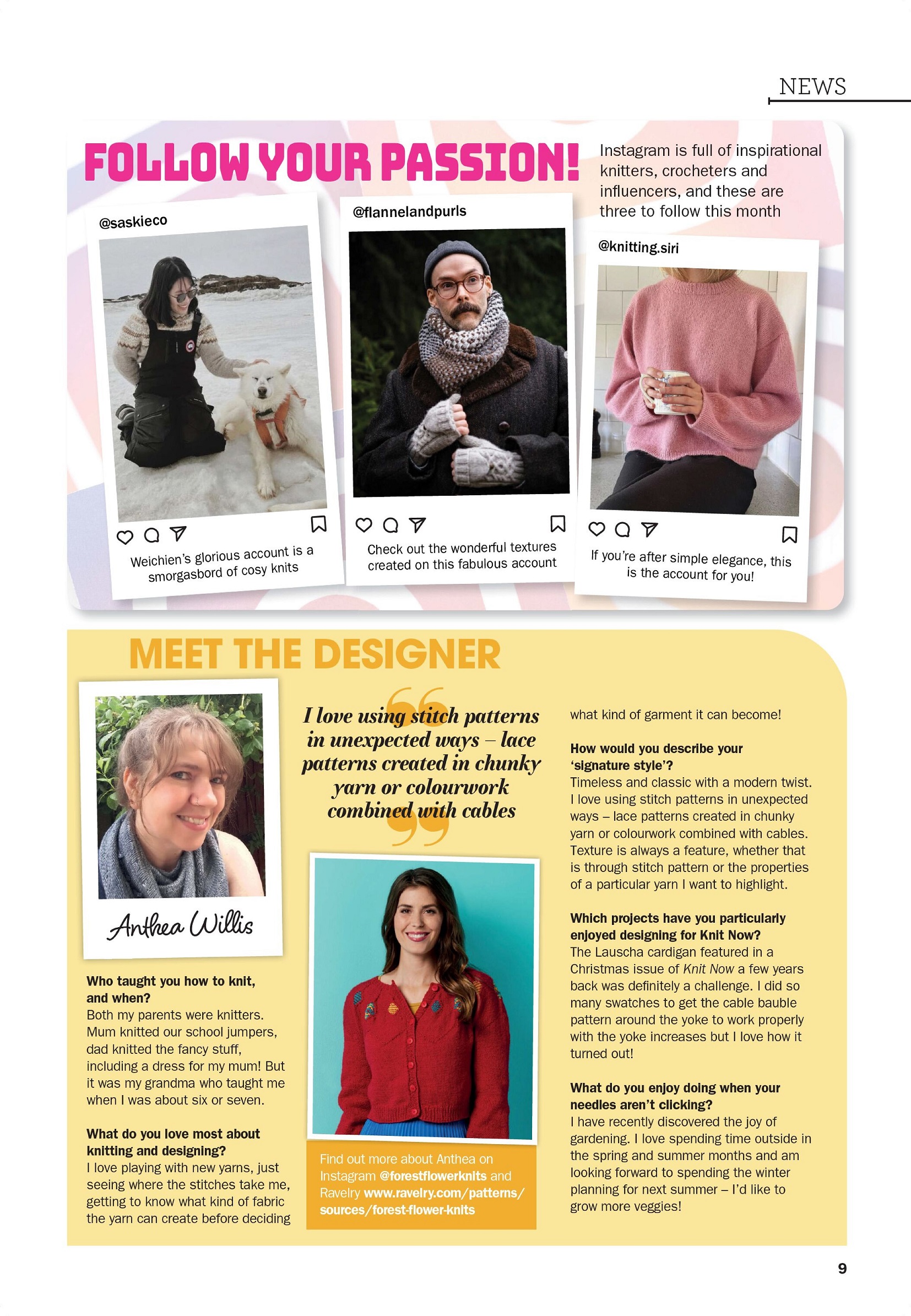 "Knit Now" - журнал по вязанию на спицах. В каждом выпуске журнала предложена коллекция современных, стильных, трикотажных моделей одежды и аксессуаров.