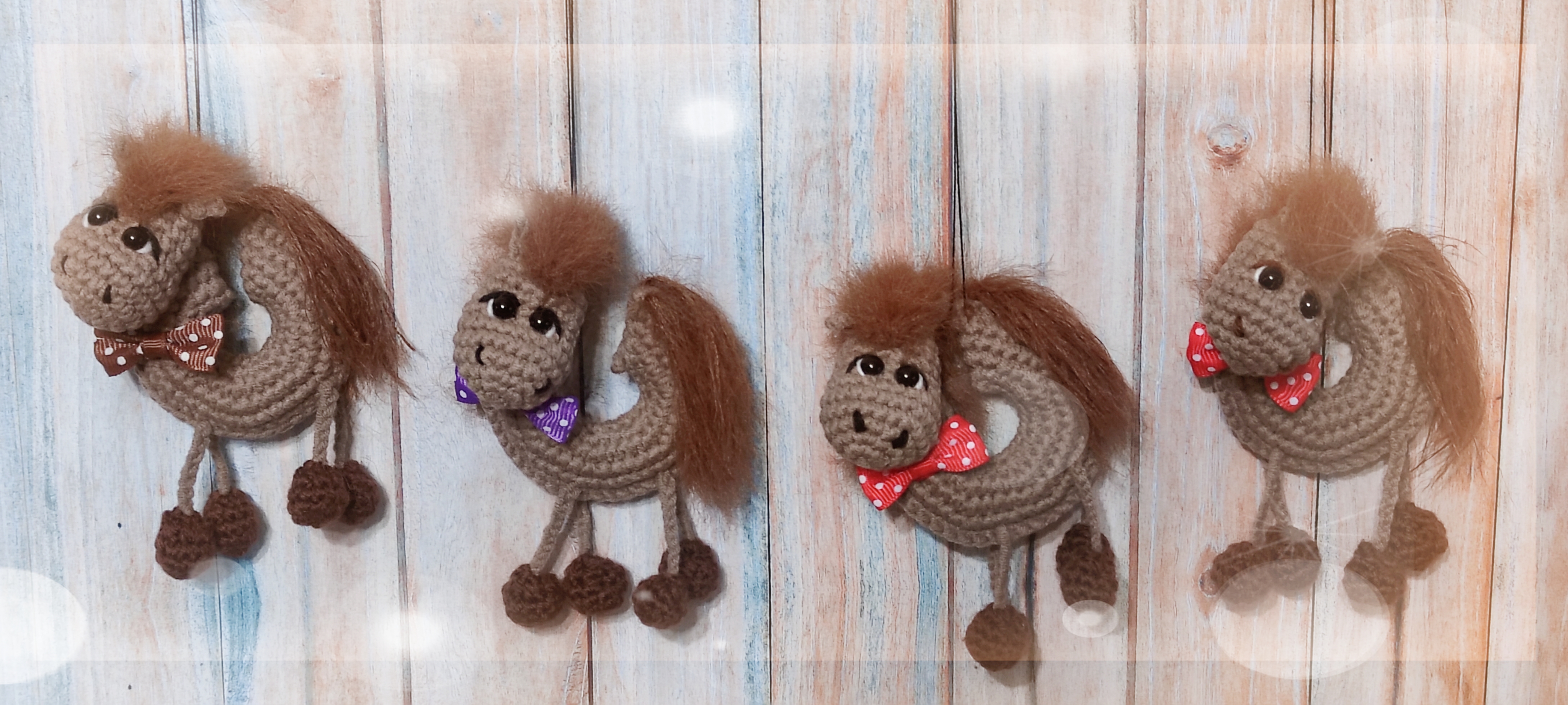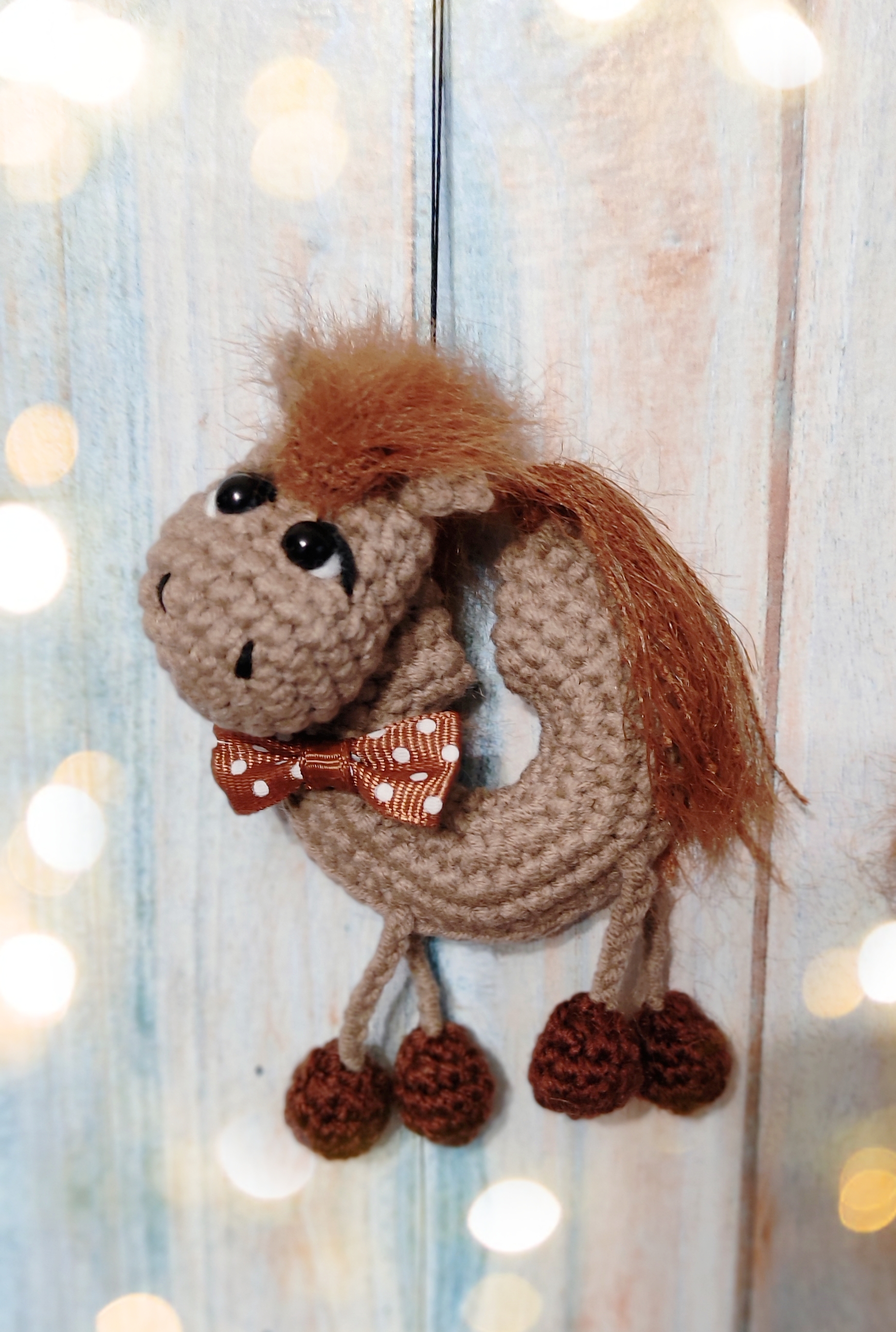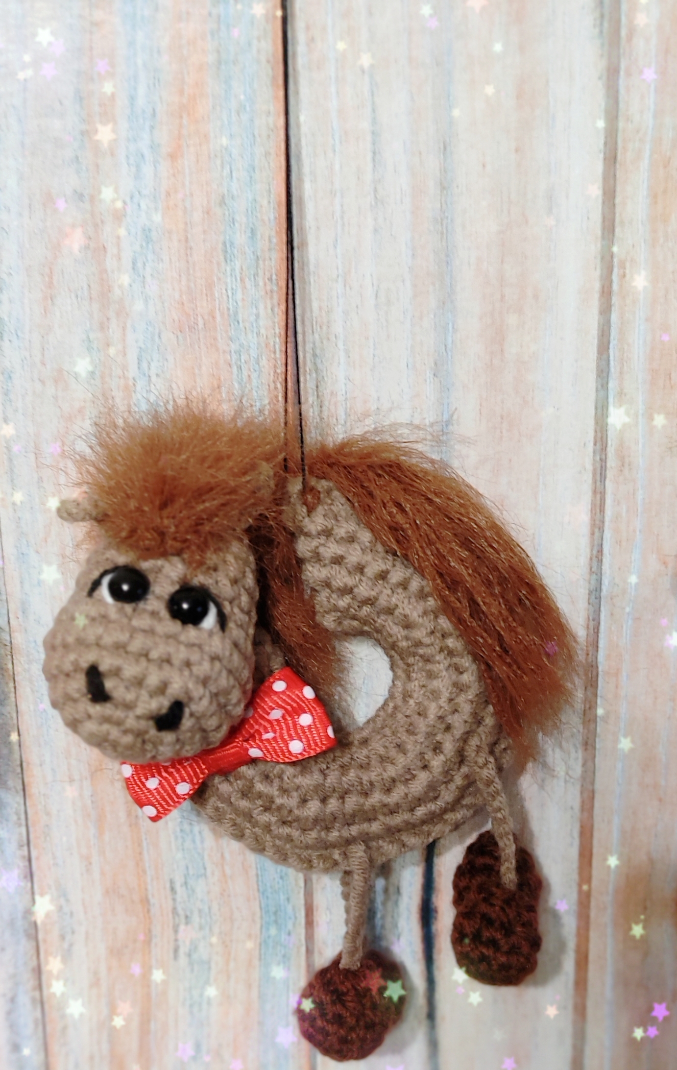 Очень оригинальный сувенир на Новый 2026 год, год лошади. Лошадка связана в форме подковы, не можно повесить на ёлочку, на зеркало в автомобиль, использовать как брелок....