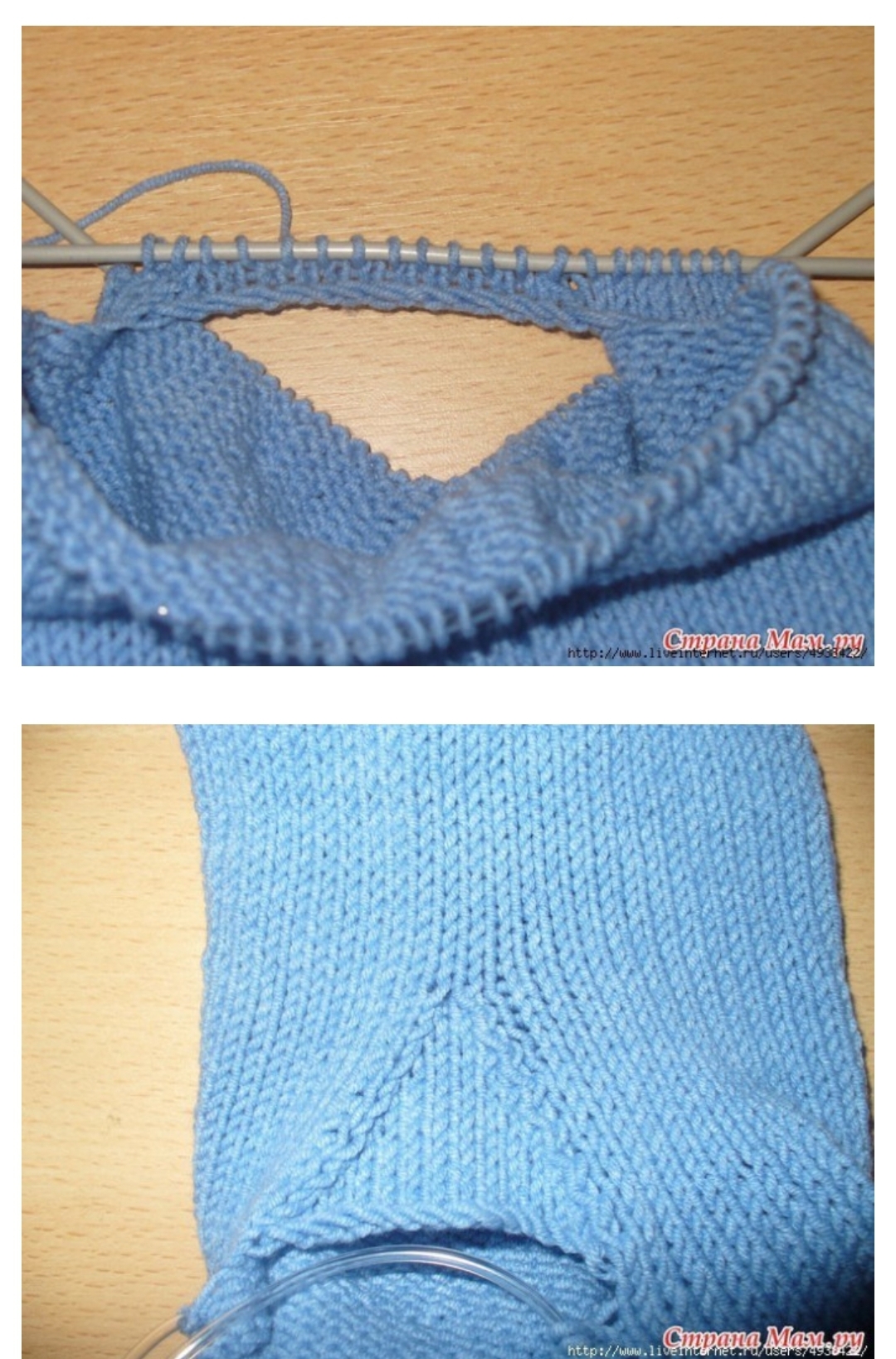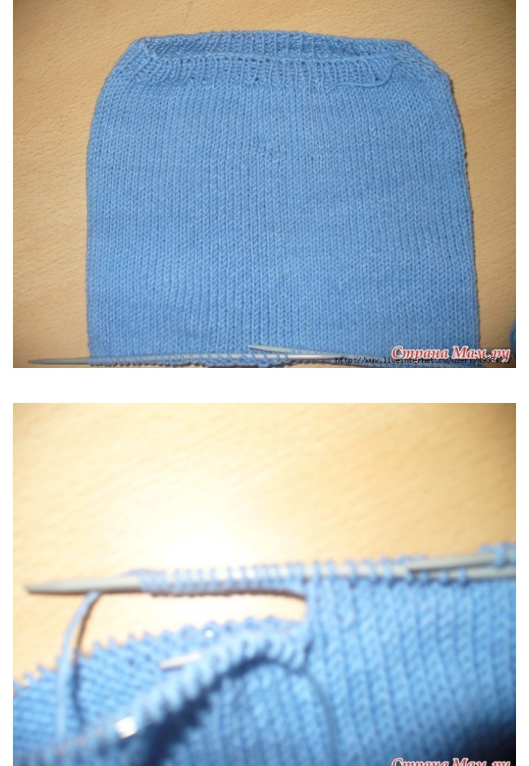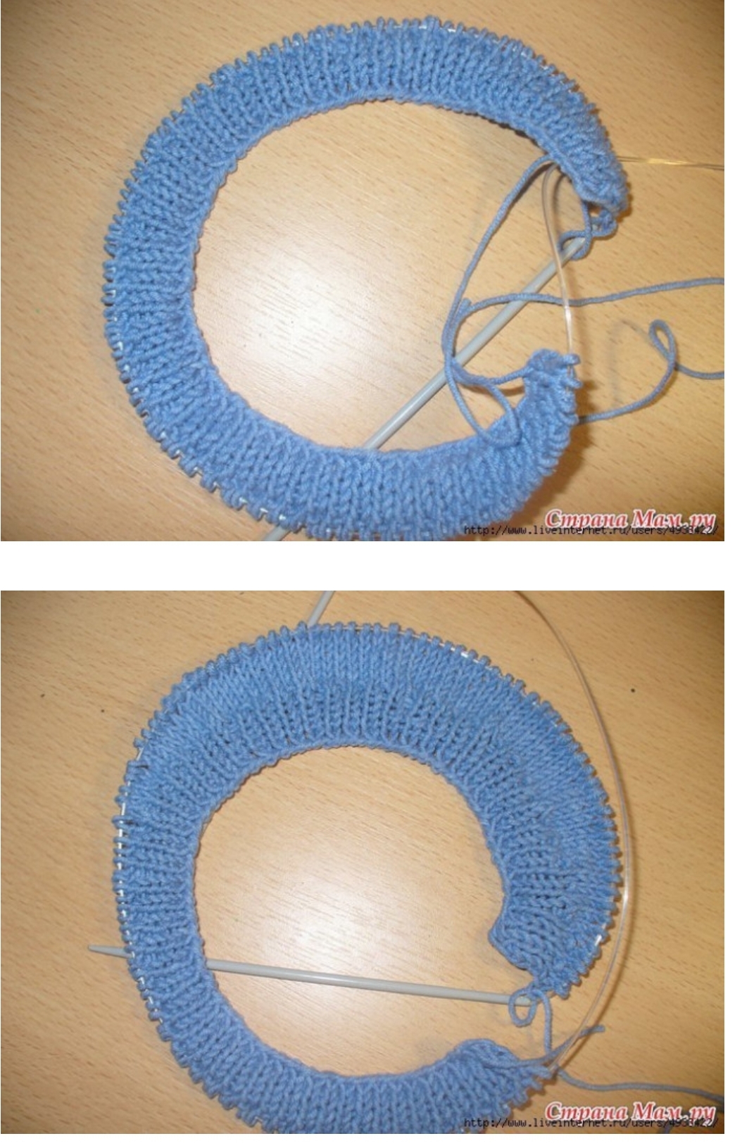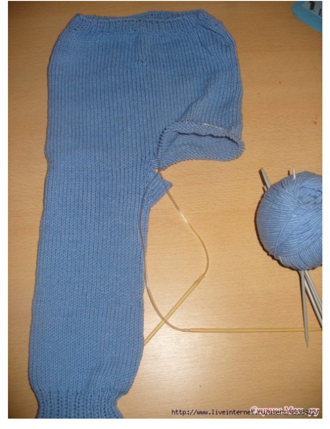 В след ряду (д. б. лицевым!) мы начинаем вязать по кругу. И вяжем на нужную длину, для малышей следует учитывать памперс, так что чуточку подлиннее.