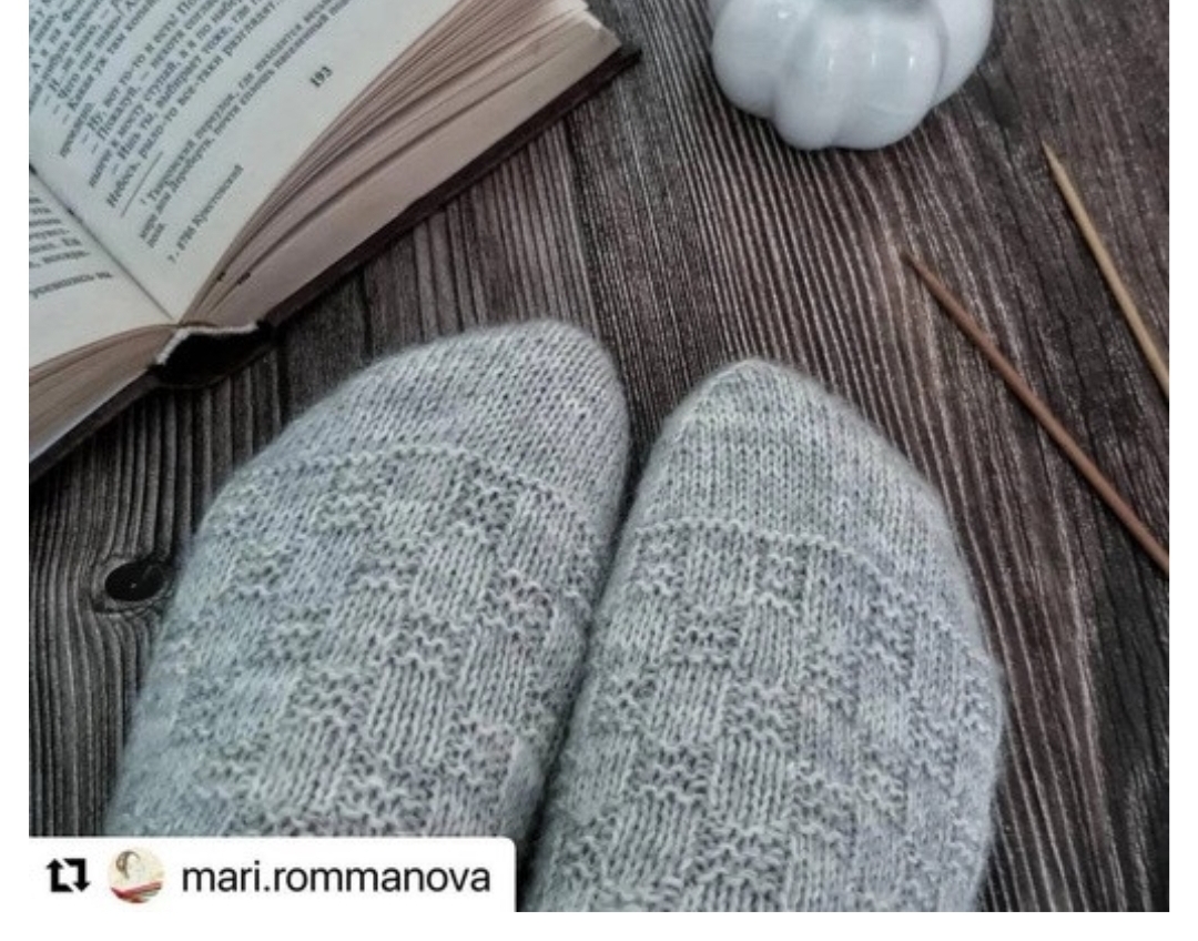 Для этого поднимаем с боковой части пятки 14/16/18 п, провязываем по раппорту петли передней части, поднимаем со второй боковой части стенки пятки 14/16/18 петель.