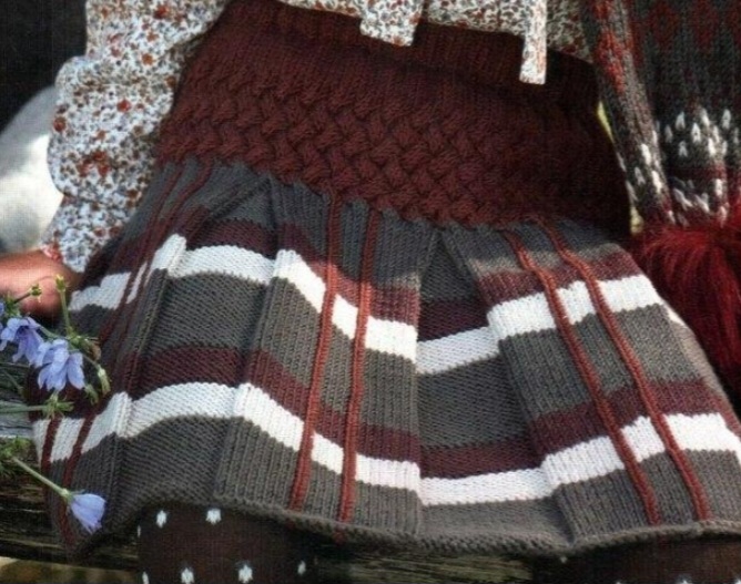Оригинальной и интересной моделью данной юбки заинтересуются многие мамы, которые уже долгое время создают для своих деток вязаные вещи, а в дополнении к юбке можно сделать еще и теплю шапку с шарфом. Юбка, как и шапка с шарфом — очень теплые, и отлично подойдут для осенней погоды.