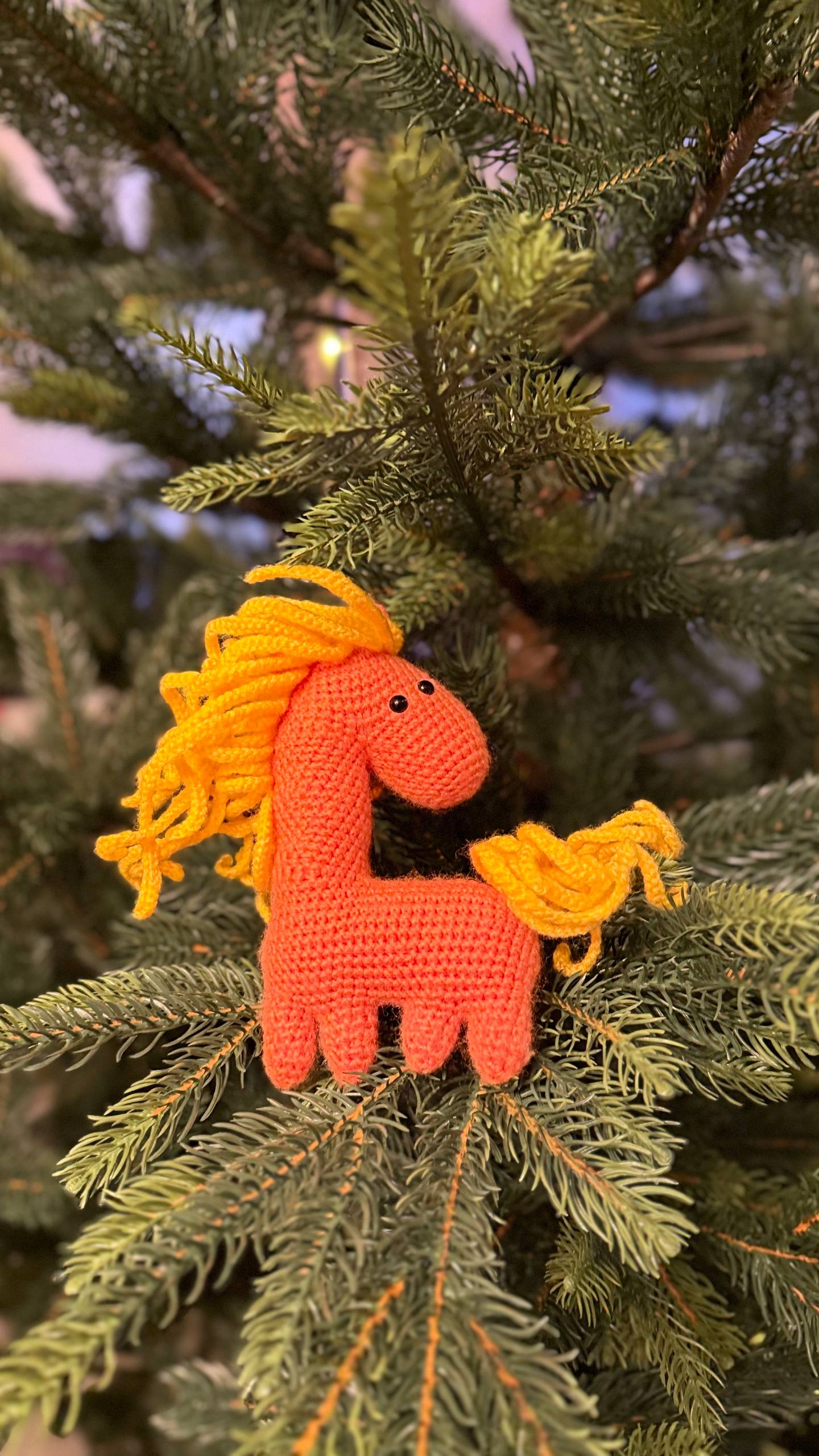 Добрые лошадки , связанные крючком из пряжи Детская Пехорка Новинка. Отличный подарок на Новый год и Рождество.