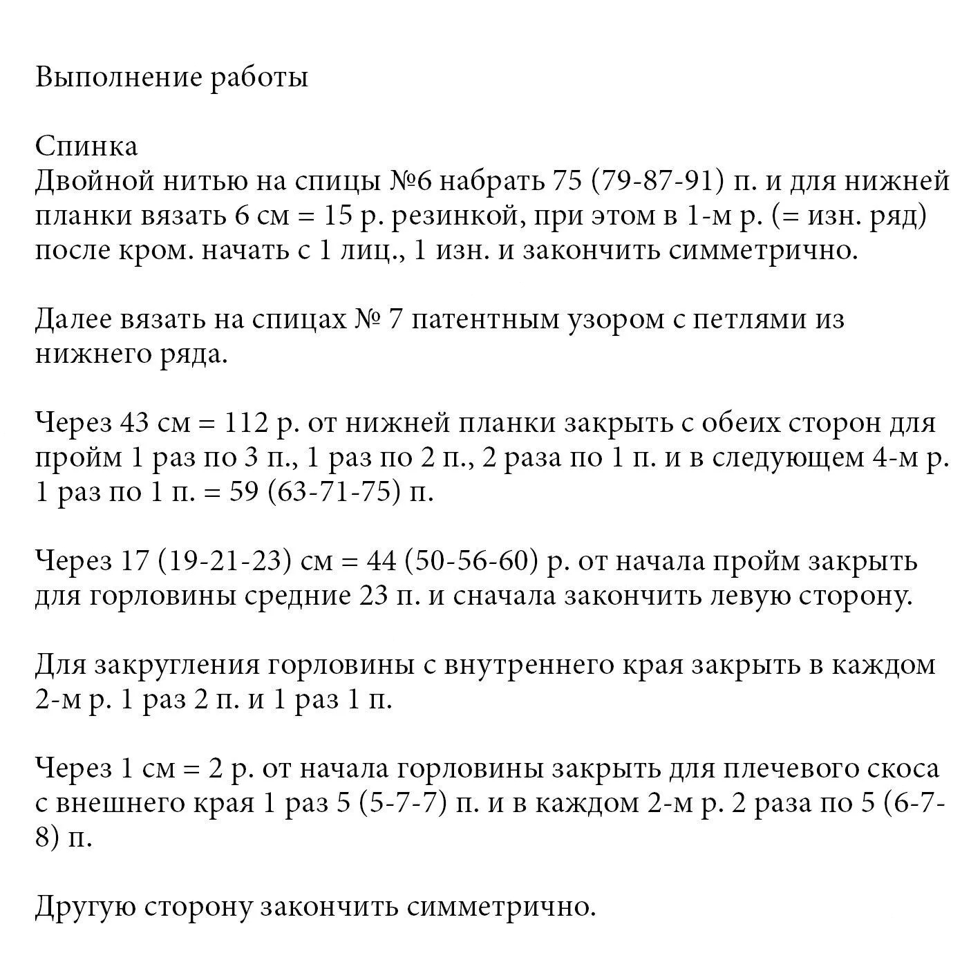 Пряжа (100% натуральной шерсти; 125 м/50 г) — 950 (1000-1050-1100) г черной; спицы №6 и 7; круговые спицы №7 длиной 40 см.