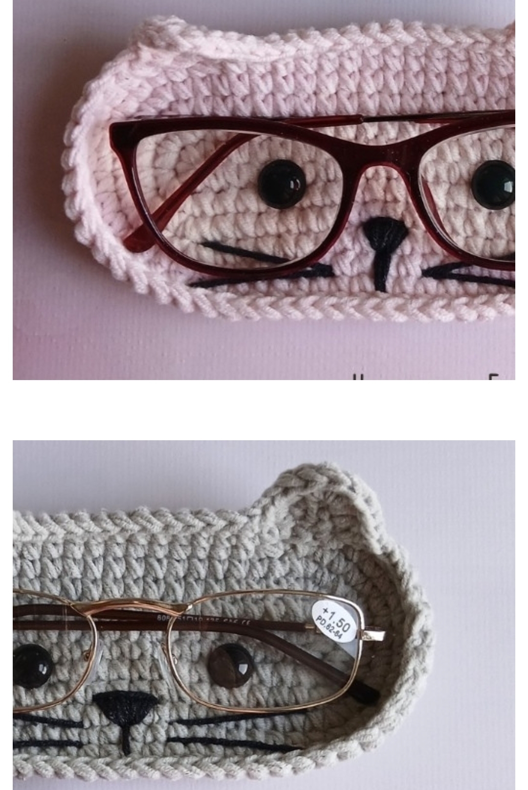 Примеряем сначала очки, определяем места для глазок и носика. Клеим глазки суперклеем. Чёрной нитью вышиваем носик и усы так, чтобы изнанка была аккуратной.