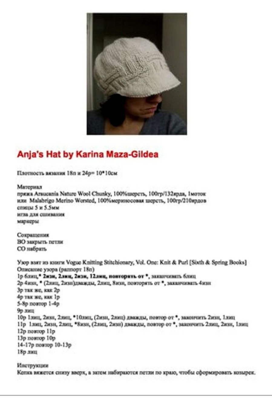 Кепи Anja’s Hat by Karina Maza-Gildea.