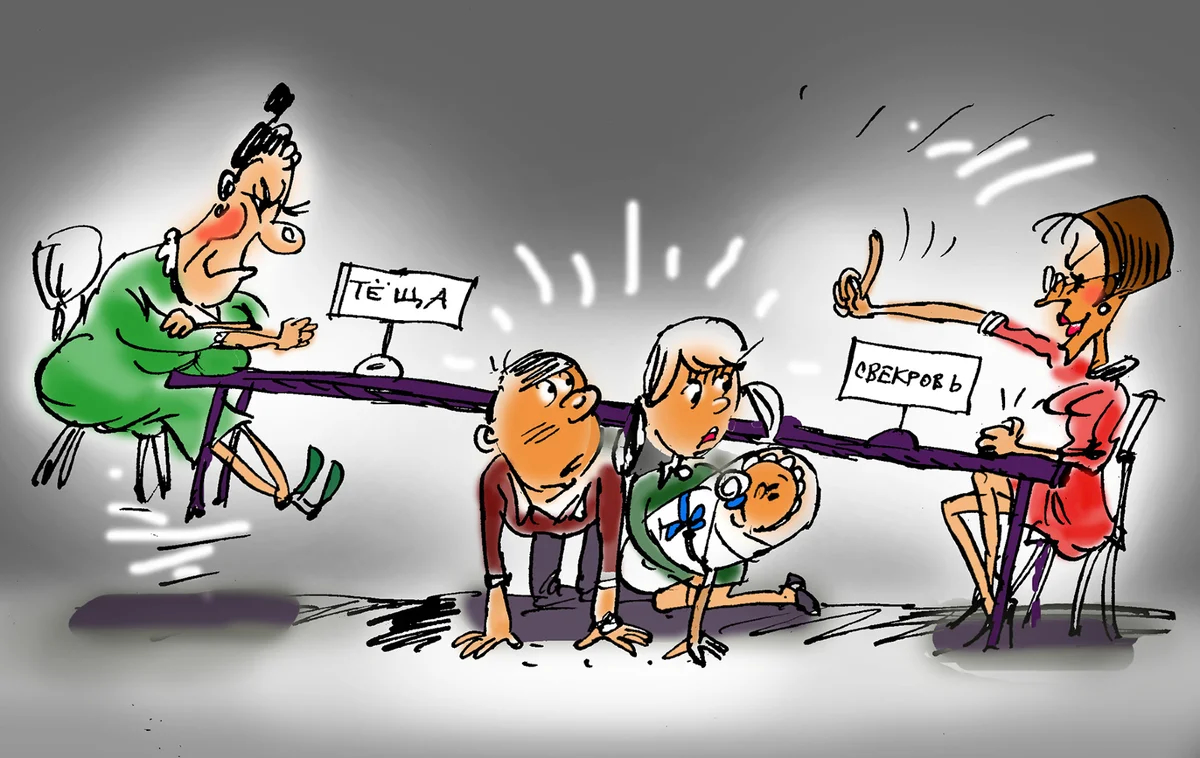 -Что будем делать?- совещаются молодые, - это невыносимо, они скоро драться начнут и нам с тобой придётся занимать сторону наших мам...