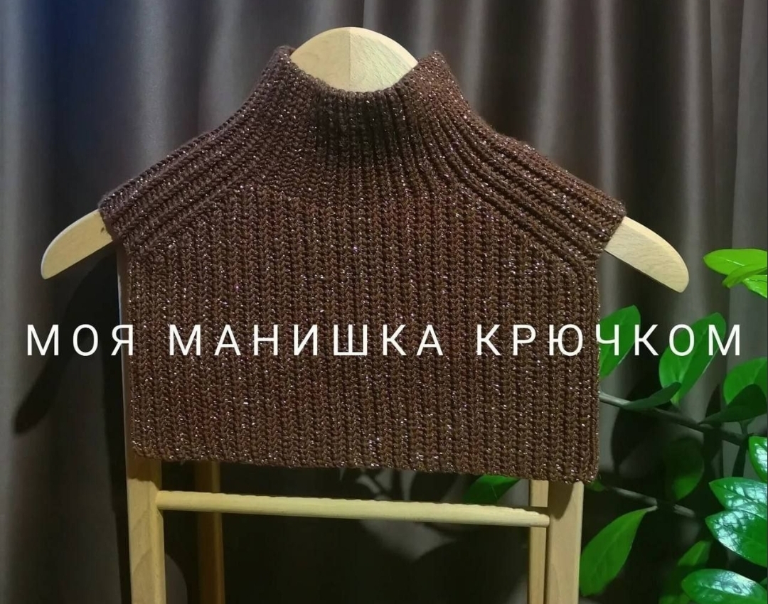 Уютная манишка, связанная крючком из блестящей пряжи, которая придает изделию особый шарм и делает его идеальным для холодного сезона. Высокий воротник с резинкой обеспечивает дополнительное тепло и комфорт, а плотный узор защищает от ветра. Особенность модели — аккуратные скосы плеч, которые создают элегантный силуэт и подчеркивают мастерство вязания. Эта манишка станет стильным и функциональным аксессуаром в вашем гардеробе.