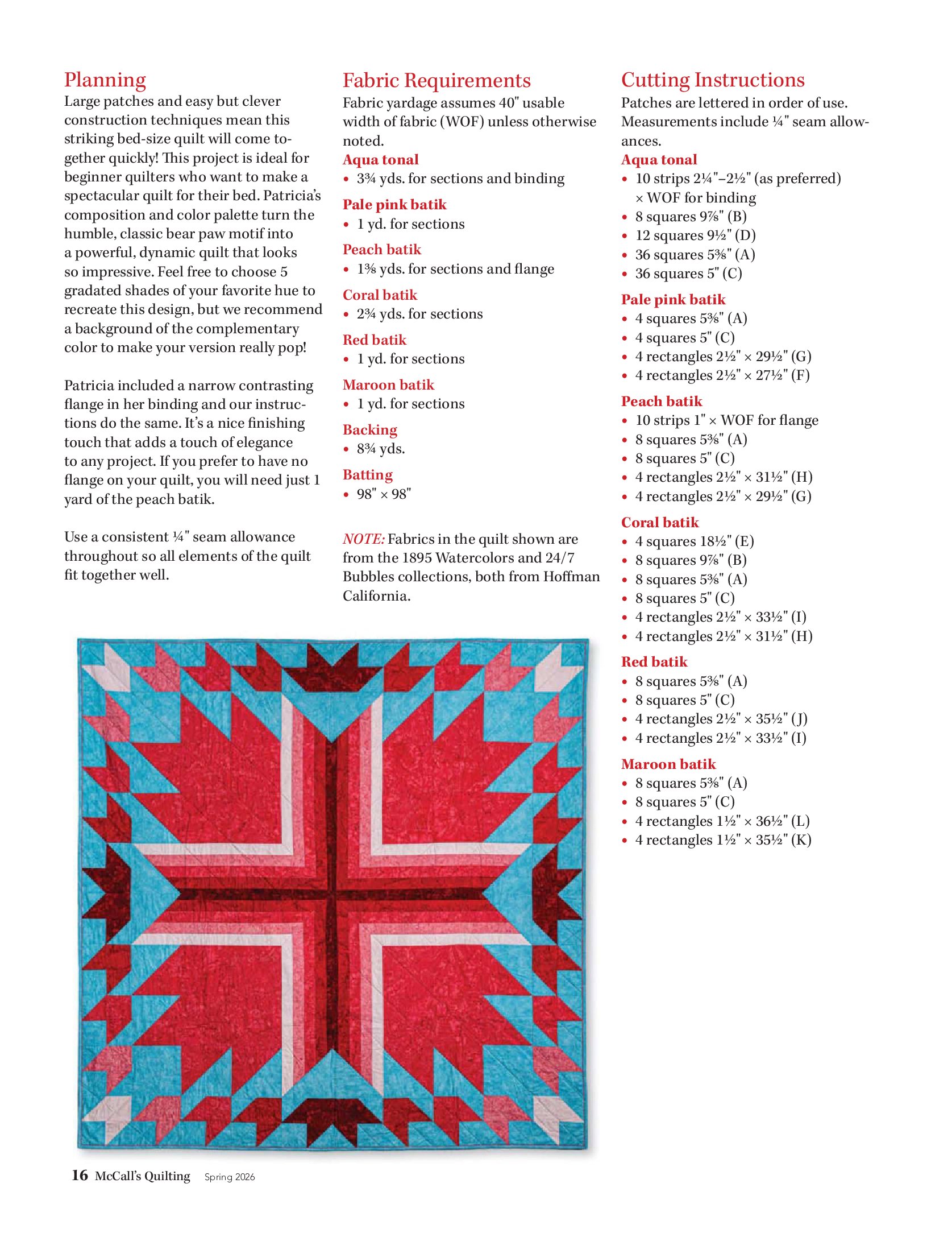 Коллекция проектов для рукодельниц в журнале «McCalls Quilting - Spring 2026»