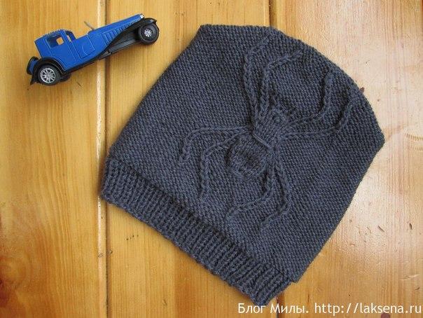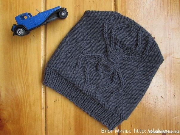 Шапка бини с пауком спицами. Схема