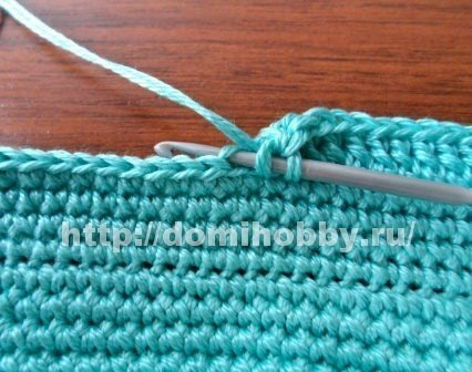 Для небольшой ручки – петли свяжите шнур-гусеничку, длиной 25 см и пришейте его к любому обвязанному краю замка.