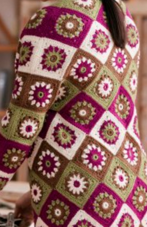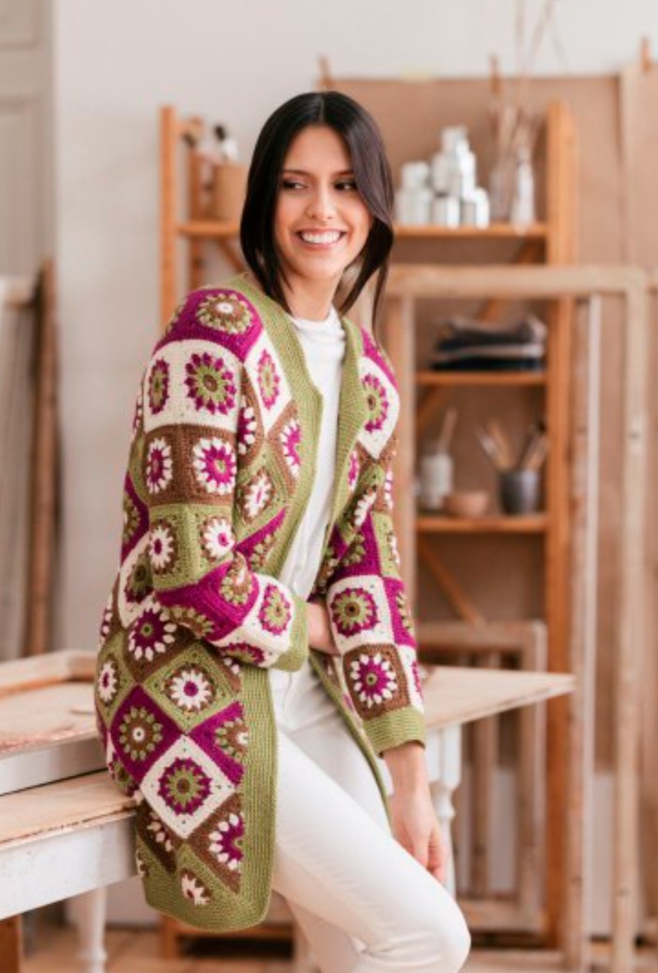 Кардиган Helena от производителя пряжи Novita, связанный крючком в технике «бабушкин квадрат» — идеальный проект для того чтобы извязать остатки пряжи.