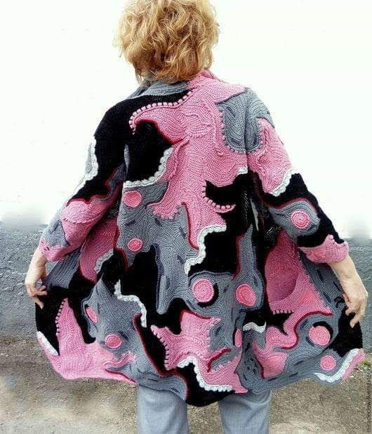 При вязании крупных изделий в технике фриформ можно воспользоваться разнообразнейшими видами пряжи и технологиями. Вязать постепенно, накапливая элементы узора,по мере желания и вдохновения. А чтобы знать, к чему стремиться в итоге, вот несколько вдохновляющих моделей и несколько работающих схем.