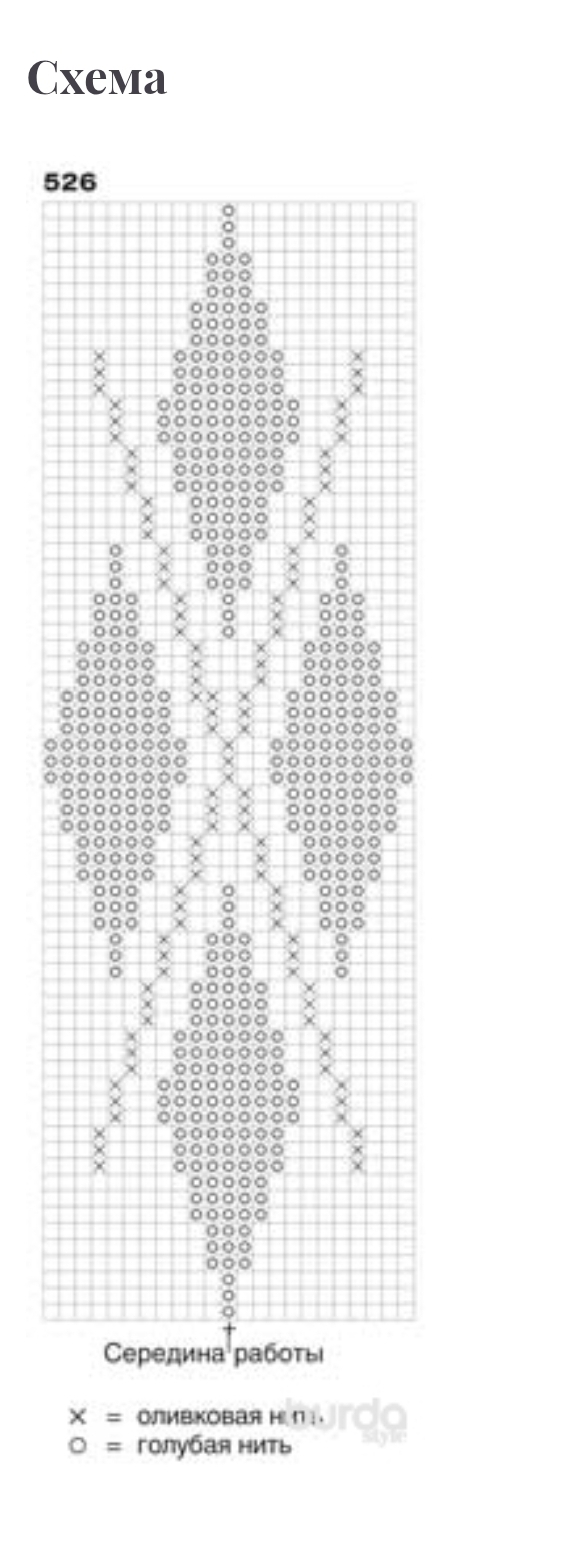 На верхней части выполнить по схеме вышивку. Петли мотива распределять от середины. Деталь слегка отпарить.