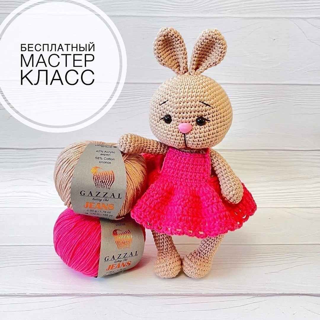 Зaйкa в розовом платье крючком. МК