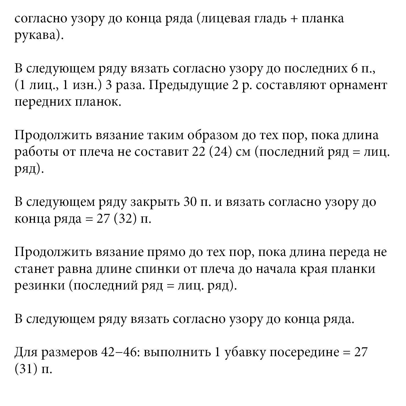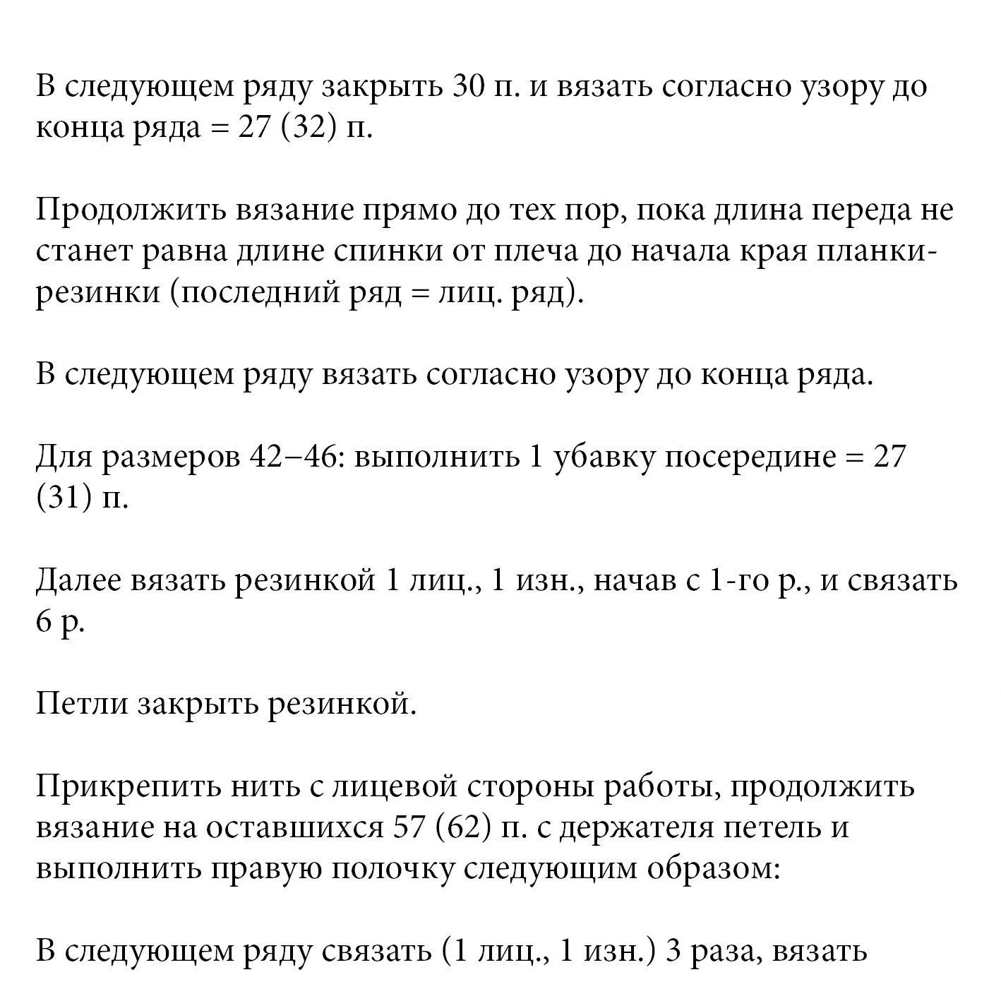 1-й ряд: вязать попеременно 1 лиц., 1 изн.