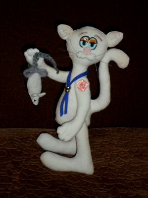 Могу тоже посоветовать, как можно сделать усы. Из капроновой половой Щетки я обычно выдираю пару волосков, они как буква Л, с перегибом, так можно из пришить за перегиб или проткнуть через носик, правда в этом случае пострадает щетка:)