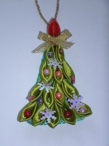 Но осебенно меня покорила елочка из лепестков канзаши. Браво!
