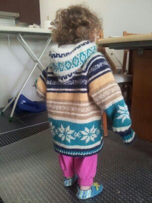 Моя старшая дочь живёт в Австралии, скоро там начнётся зима, вот связала за месяц для 3-х внуков и уже отослала. Специально вязала из шерсти одного качества и с одним жаккардом: