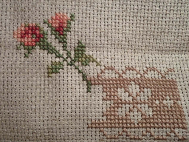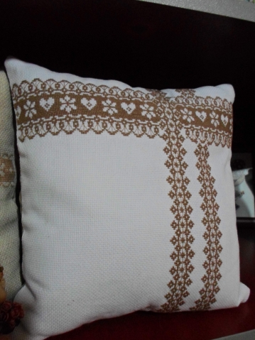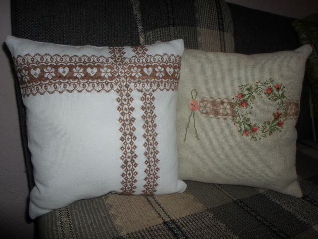 Белая Аида и нитки темнее льна первой подушки - старалась чтобы было в тон. В оригинале кусочек кружева льняной подушки - белый, но такой темной канвы я не нашла и слегка поменяла цвета.
