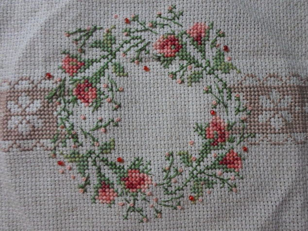 Розовые бутончики - французские узелки и несколько ярких бисеринок, чтобы оживить венок.