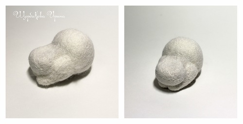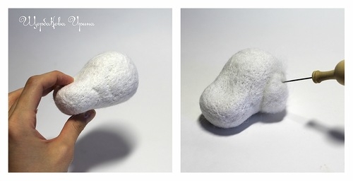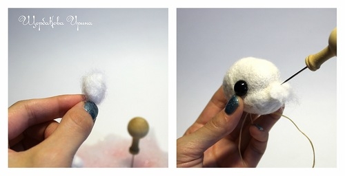 Носик наращиваем маленьким кусочком шерсти и сразу приваливаем