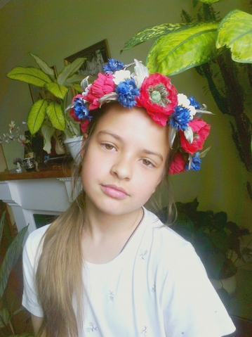Сегодня сделала на заказ очередной украинский венок. Модель для съемок у меня одна-внучка Лиза.