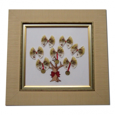 Очень быстро вышила эти деревца, дольше возилась с купюрами, нужно было тоненько и ровно их выложить.