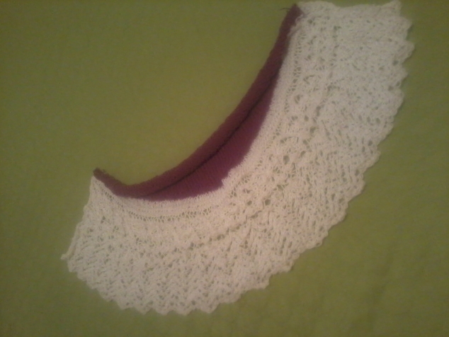 И пришла мне в голову идея соединить 2 рисунка в один мотив - связать фишю.... достала ниточки ( остатки от предыдущих работ), но для "пробника" то что надо! и как говорится- понеслось!!!!! кайму вязала пока нить не закончилась- вышла она малого размера( но так ведь пробник же!), тело связала фишю, а вернее мини- мини фишю тоже моточек закончился!))) поставила на блокировку... и вот оно чудо ! Получилось! девочки! может будут предложения?! Вносите!!! теперь в планах связать тоже самое , но только уже в полном размере))))