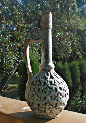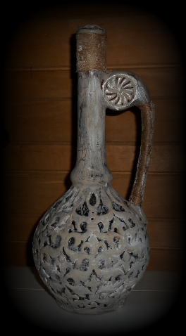 Случайно увидела в магазине замечательной формы глиняные сосуды с вином, красивый орнамент выпуклый, ну не могла устоять, чтоб не купить, так..., нужна причина...., ура, вспомнила - два дня рождения, что-же беру две, хоть и дороговато, но ведь в подарок, не жалко.
