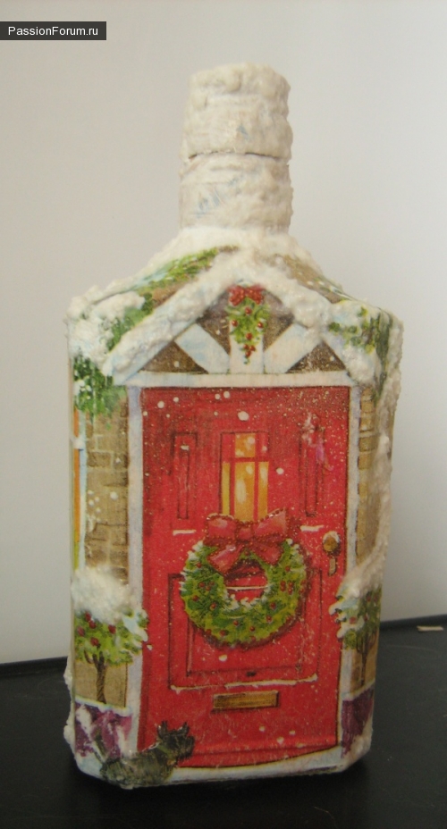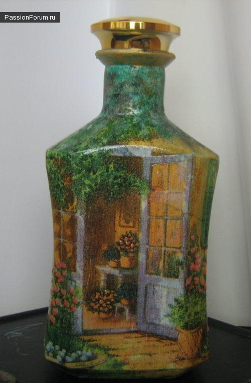 спасибо.фактуру делала шпаклевкой по дереву смешаной с пва.1 и последняя это одна бутылка.на 2 обе стороны с одинаковым рисунком.