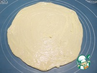 Раскатываю один кусок теста в круг толщиной примерно 4-5 мм, смазываю размягченным сливочным маслом. |