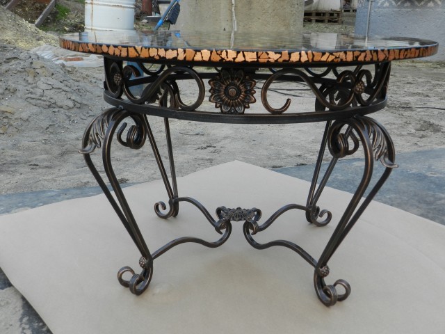 Уважаемые мастера и мастерицы! Закончила работу над ковано-декупажным проектом и очень хочу поделиться с вами результатами своих трудов. Поступил заказ на столик, который должен был объединить в себе кованое основание и декупажную столешницу. По дизайну были очень четкие требования - "чтоб шкура леопарда и золото", так что если вам сие сочетание принта и потали покажется некомильфо. я не виновата))) Это условие заказчика! Я переделывала столешницу два раза... извела море потали... В общем, смотрите, что у нас с зятем-кузнецом получилось!