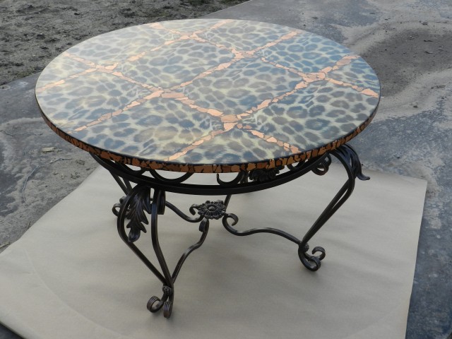 Как известно-желание заказчика закон!!! Хотя себе столик с таким принтом бы не хотела.Поталь у вас классно смотрится-а вот сочетание со шкурой леопарда???? Но вы безусловно справились!!! Привет зятю и восторженные аплодисменты от ковки!!! Восторгаюсь вашей совместной работой!!!
