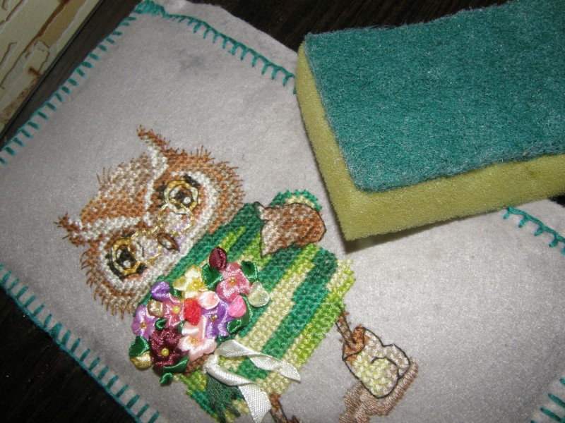 мне если честно очень тяжело далась вышивка на такой канве, т.к. канва на мой взгляд очень «рыхлая» и попасть точно по середине не удавалось (возможно это, потому-что вышивала я на фетре)! только в конце я приспособилась делать крестики, когда перестала пытаться попасть в серединку, а делать стежки из верхнего угла в верхний.