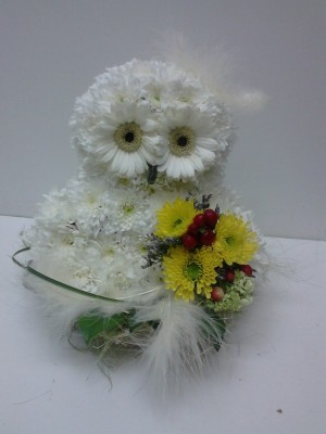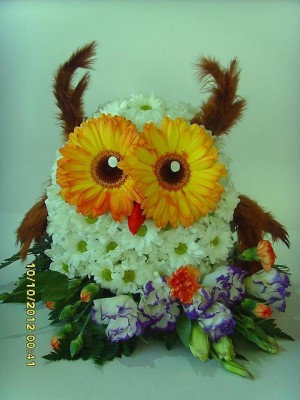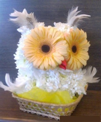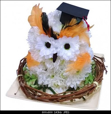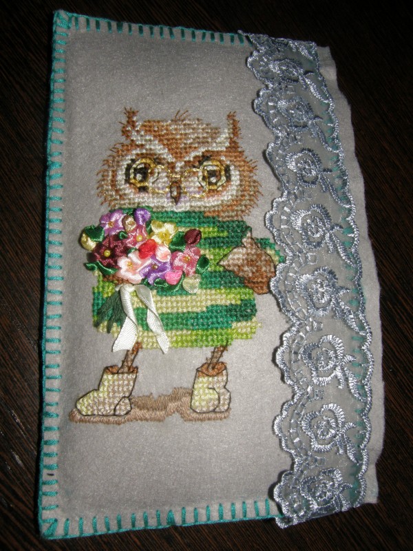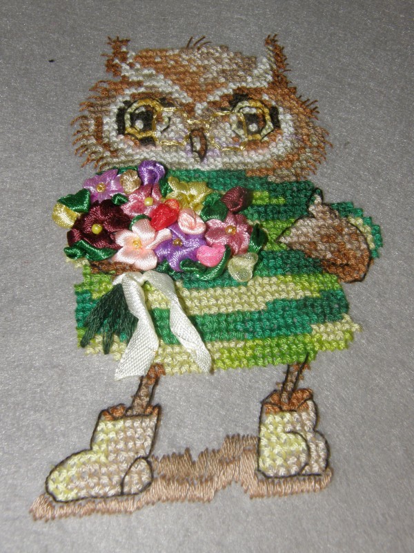 А букет весенних цветов чудесно украсил и саму совушку, и всю работу в целом!