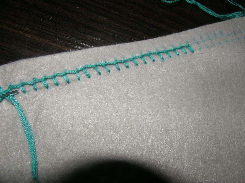 теперь приступаем пришивать фетр для того чтобы стежки были ровными я сделала разметку