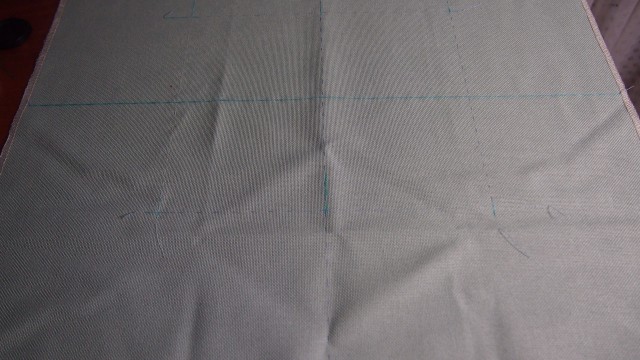 Делаем разметку .Отступив от края ткани 12 см(сюда входят: 2см-3см подгиб на подрамник; 5см-6см на паспорту; 2см-3см это расстояние от начала рамки самой вышивки до начала паспорту),прошиваем контрастной нитью по горизонтали.Отступив 12 см от края ткани по вертикали ,также прошиваем контрастной нитью.От точек пересечения вертикальной и горизонтальной контрастных нитей по горизонтали ,отсчитываем 102 нити ,это будет середина,затем еще отсчитываем 102 нити и откладываем 12 см,через полученные точки прокладываем контрастные нити.Далее по вертикали от точки пересечения двух контрастных нитей вверх отсчитываем 116 нитей ,это середина,от нее еще 116 нитей ,потом откладываем 12см и через полученные точки прокладываем контрастные нити.