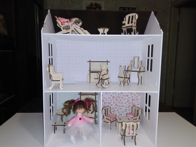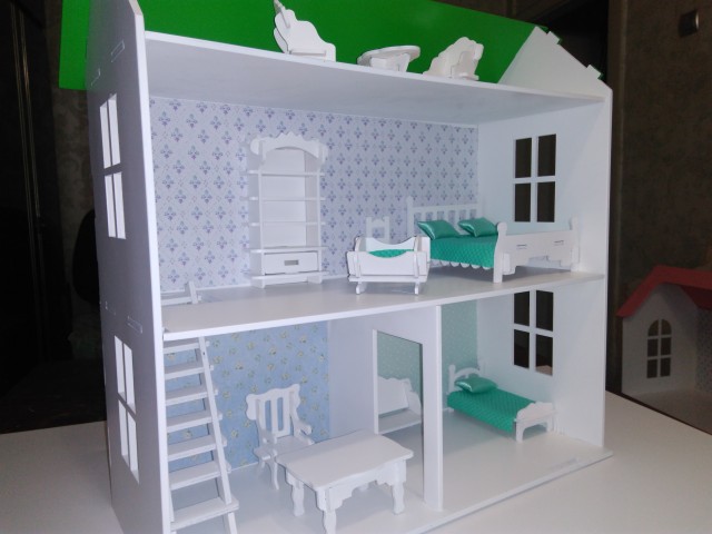 Добрый день, дорогие рукодельницы. Хочу представить вам работу моего зятя, кукольные домики. Домик и мебель выполнена из фанеры, что делает его экологически чистым и безопасным, покрашены акриловыми красками.
