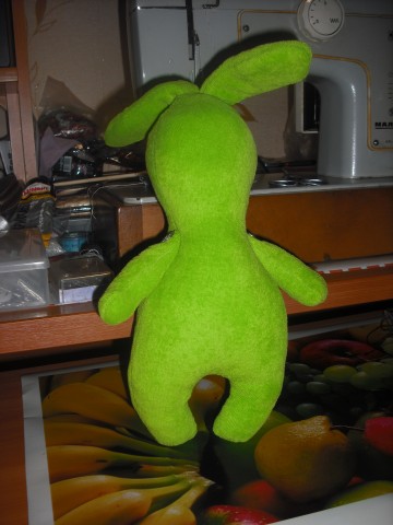 Да, я специально зелененького делала для сына, ему 2 года 7 месяцев. Малыш очень быстро отреагировал на нового зеленого зайца, уже его подержал в руках и немного поиграл. Серых зайцев постаралась тоже сделать безопасными, мордашки тоже вышивала…