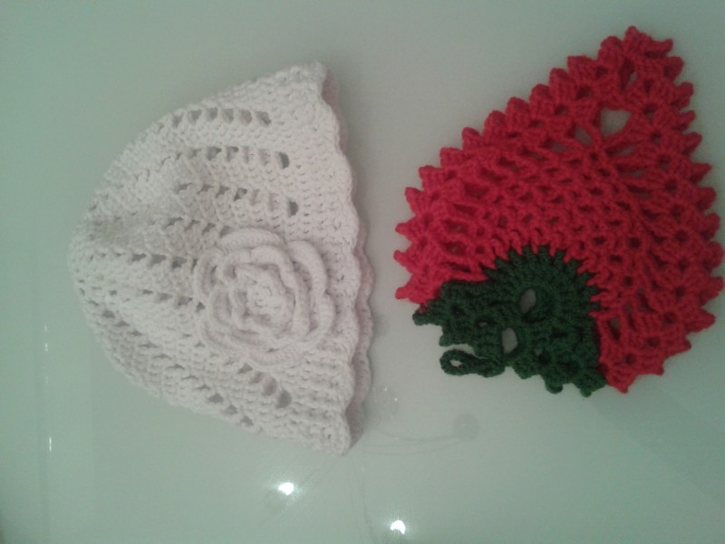 Это подарки , которые Ирины заботливо связала : для внучки панамочка (видите, как внимательно Ирочка изучала мою "биографию"), для меня хваталка - аппетитная клубничка. Хваталка удивительна - двойная, я такого не видела раньше.