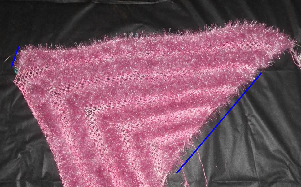 Только в этом случае пометьте маркерами одного цвета все углы палантина и маркером контрастного цвета то место, где будет начинаться/заканчиваться ряд (желательно, чтобы новый ряд начинался с одного из углов).